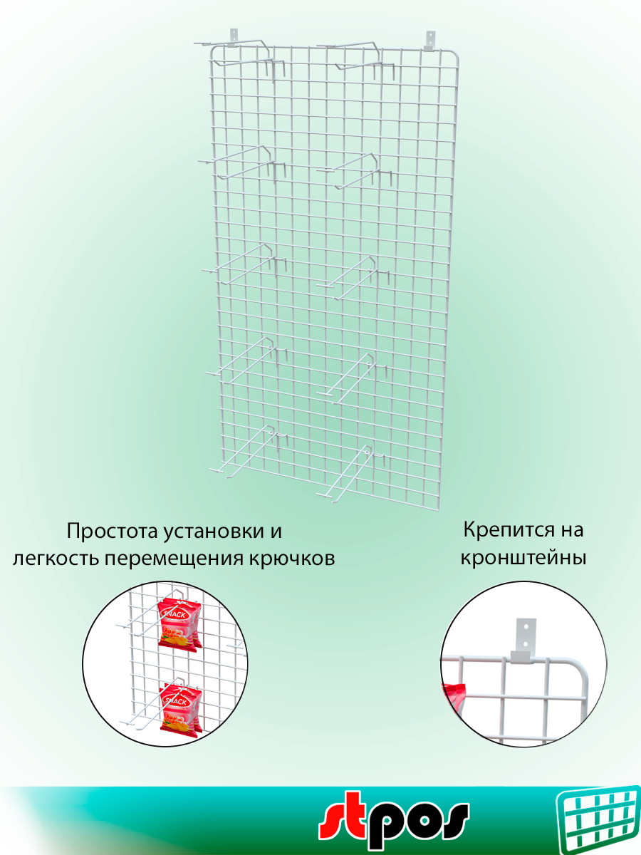КОМПЛЕКТ Сетка 1200х600, Белый+Крючки одинарные с ц/д 275 мм, d4/d4, шаг 50мм, Белый - 10 шт+Кронштейны интересное: