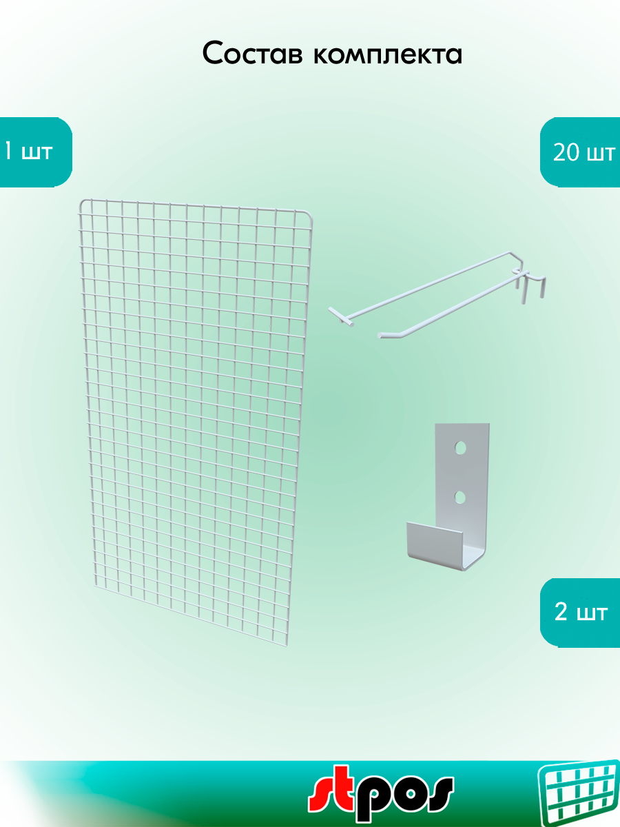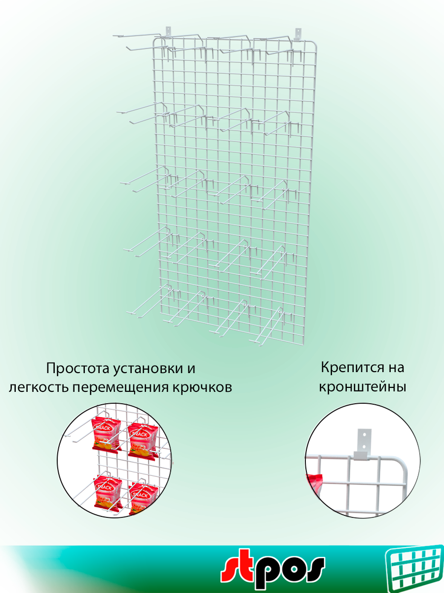 КОМПЛЕКТ Сетка 1200х600, Белый+Крючки одинарные с ц/д 275 мм, d4/d4, шаг 50мм, Белый - 20 шт+Кронштейны интересное: