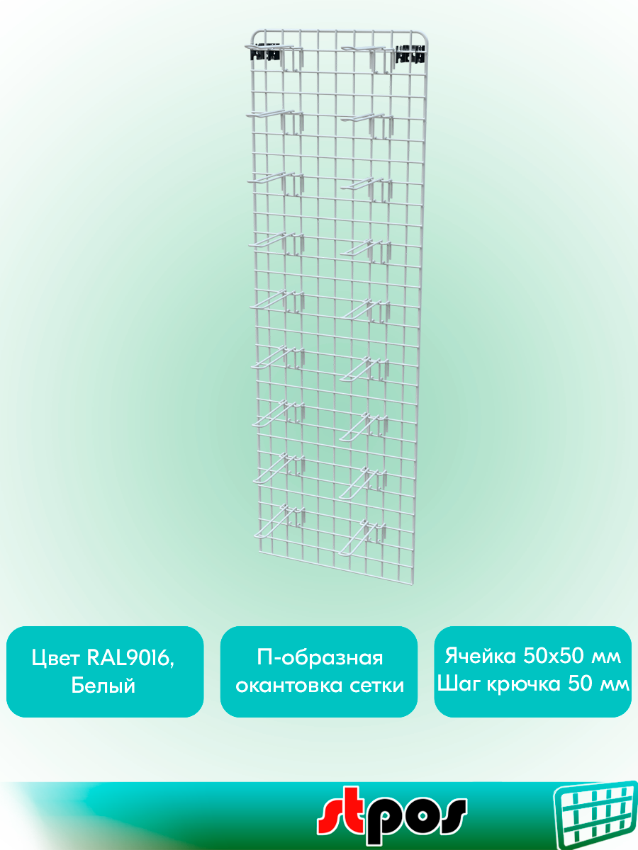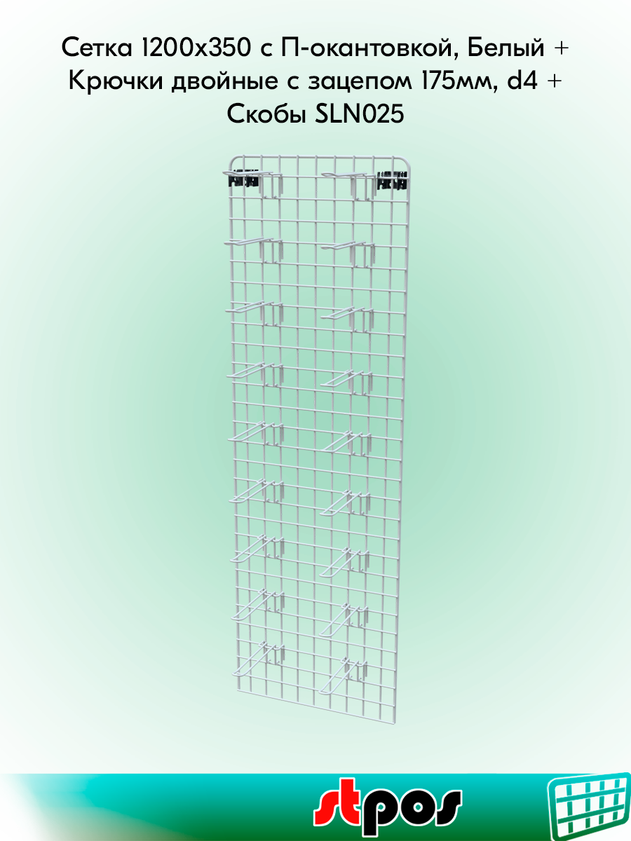 Купить КОМПЛЕКТ Сетка 1200х350 с П-окантовкой, RAL9016, Белый+Крючок двойной 175мм с зацеп, d4, шаг 50мм(20 шт)+Скоба SLN025