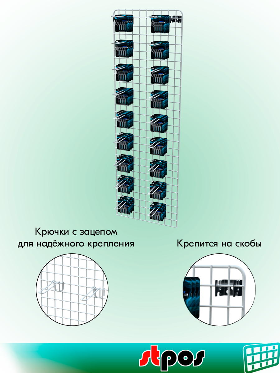 КОМПЛЕКТ Сетка 1200х350 с П-окантовкой, RAL9016, Белый+Крючок двойной 175мм с зацеп, d4, шаг 50мм(20 шт)+Скоба SLN025 интересное: