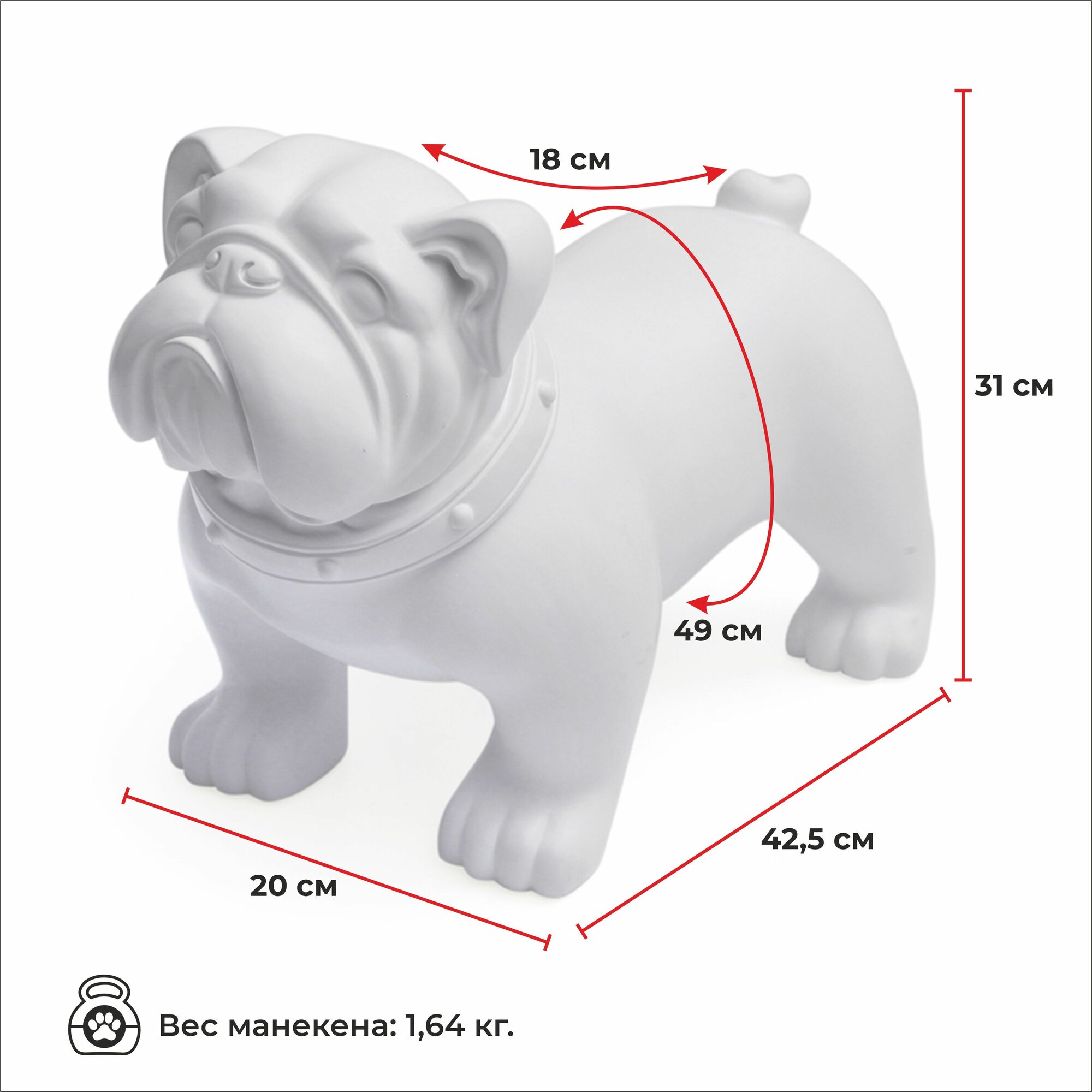 Манекен собаки AFELLOW "Английский бульдог Taz-1", белый, 42.5х20х31см интересное: