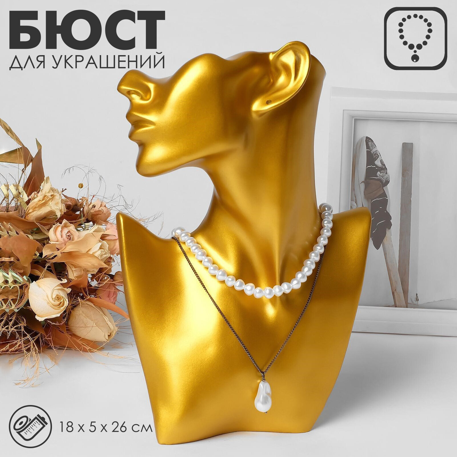 Купить 2 шт. Бюст для украшений QF, пол-лица, отверстие под серьгу, 18×5×26, цвет золото