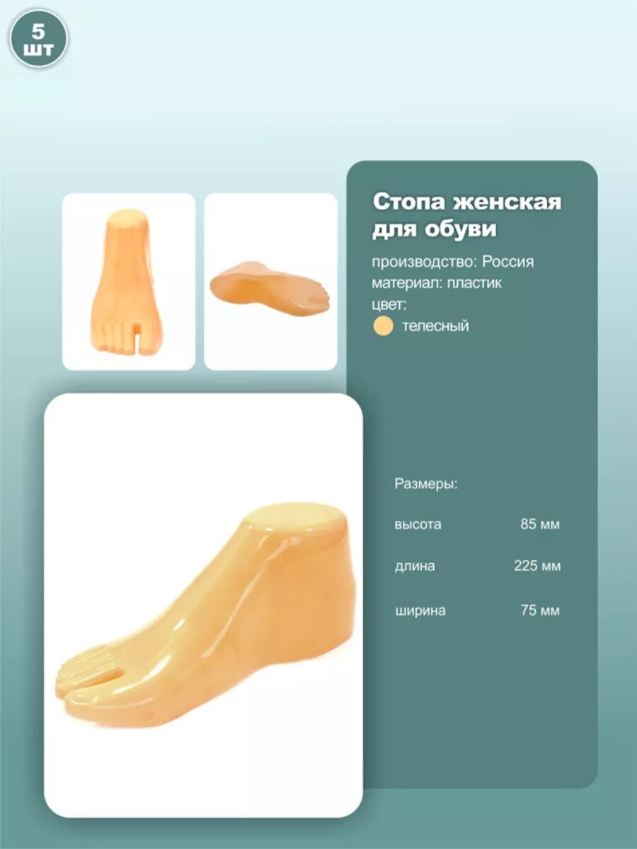 Манекен стопы, правый, длина 22.5см, бежевый, 5шт. интересное: