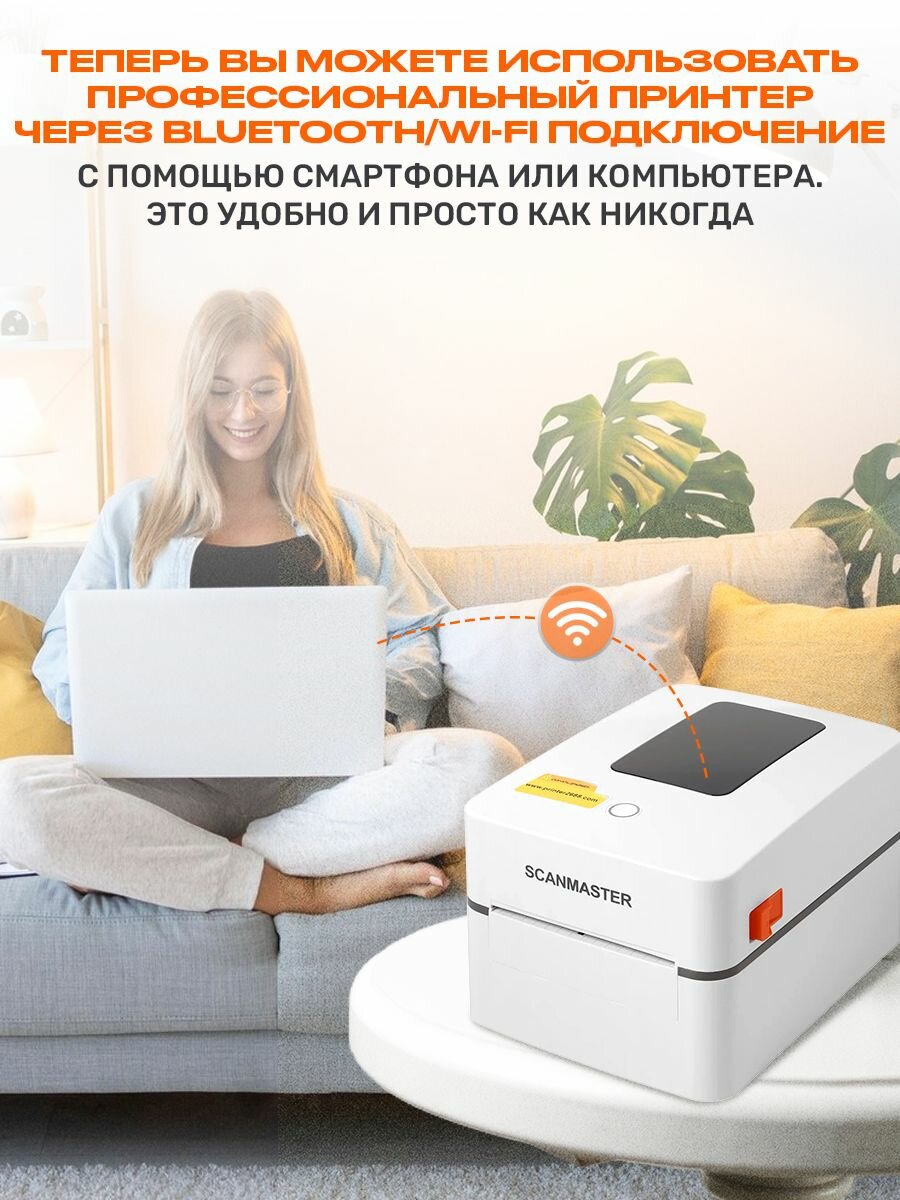Купить Термопринтер для печати этикеток и маркировки 203 dpi с Bluetooth, Wi-Fi, USB, печатью с телефона, работает с 1С