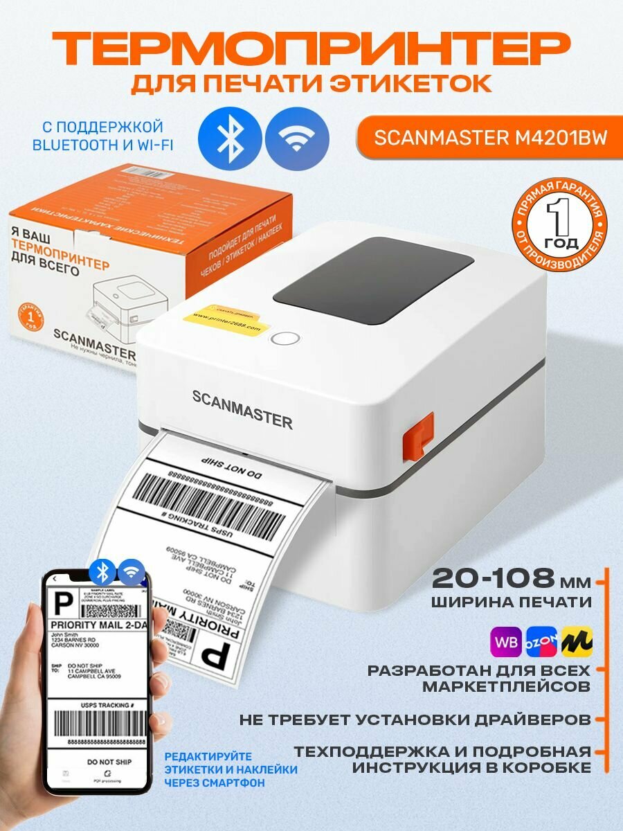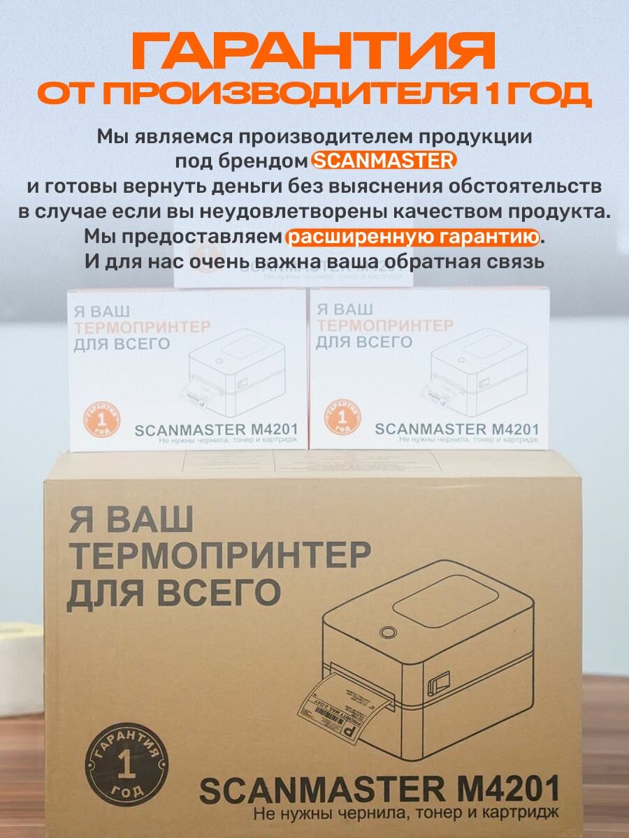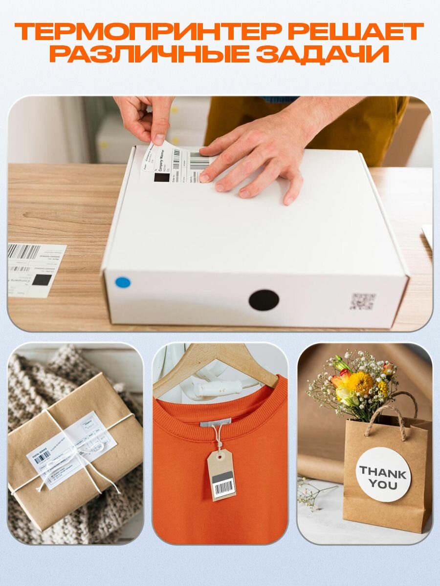 Термопринтер для печати этикеток и маркировки 203 dpi с Bluetooth, Wi-Fi, USB, печатью с телефона, работает с 1С интересное:
