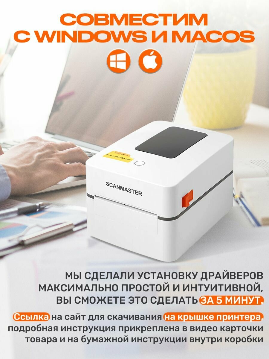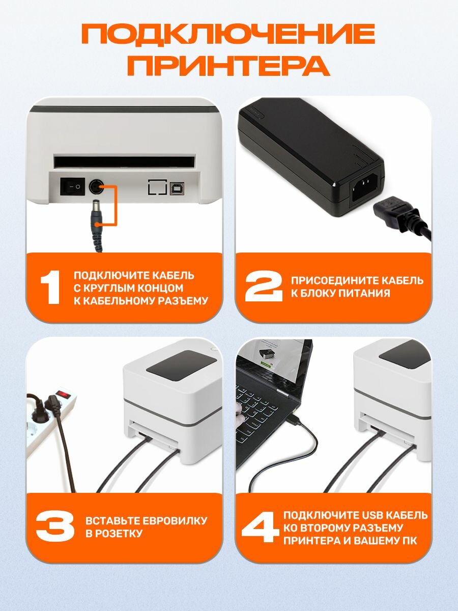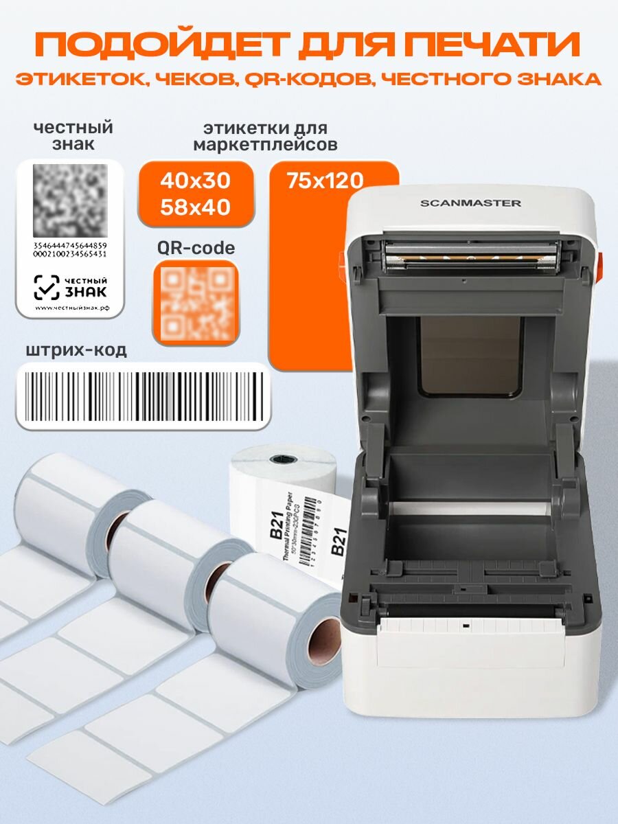 Термопринтер для печати этикеток и маркировки 203 dpi с Bluetooth, Wi-Fi, USB, печатью с телефона, работает с 1С интересное: