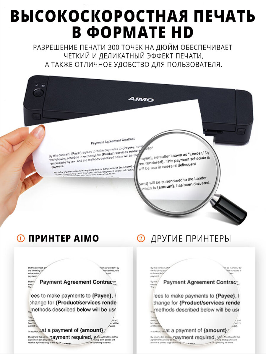 Портативный принтер для документов Bluetooth A4/ A5/ печать на обычной бумаге интересное: