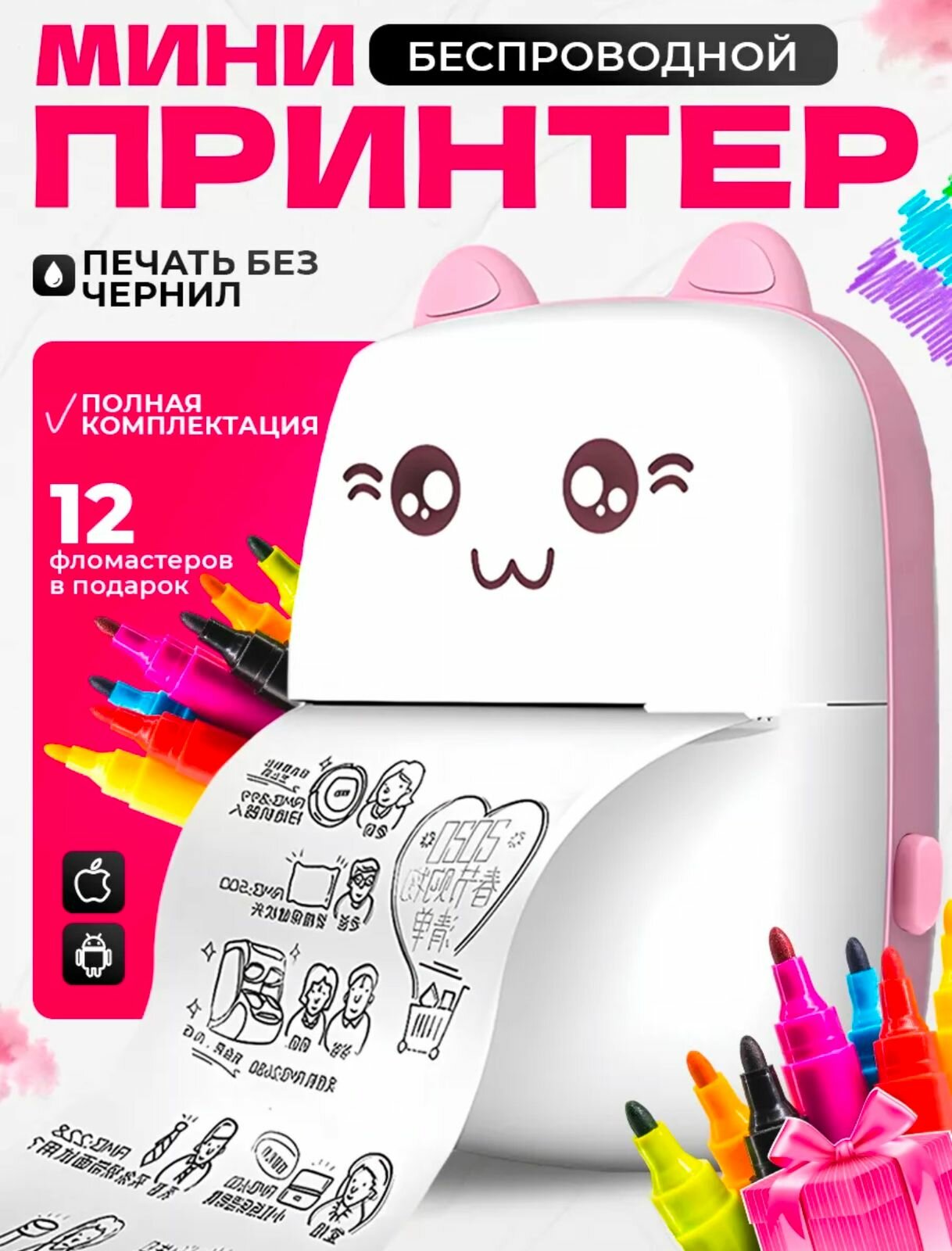 Мини-принтер, для детей, Bluetooth, USB, переносной, синий интересное: