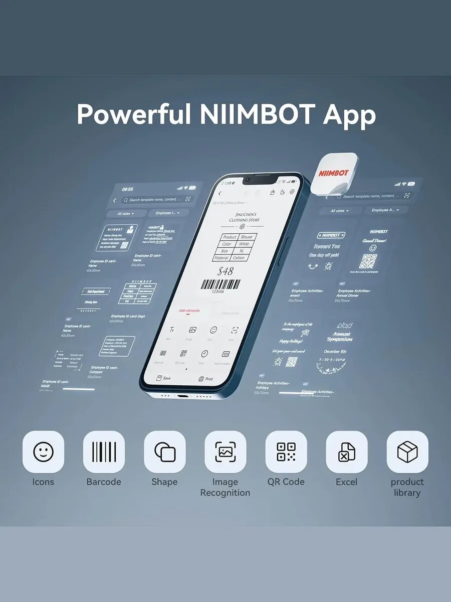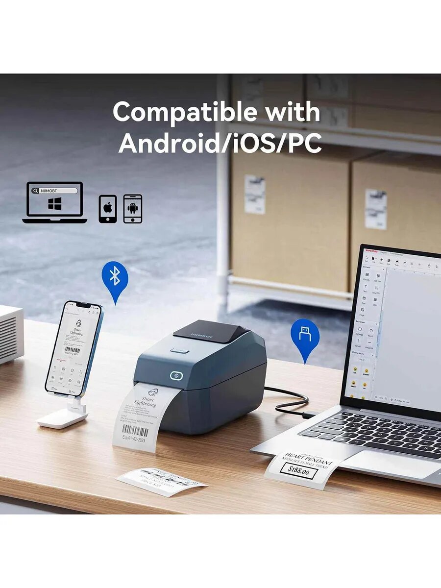 Принтер этикеток штрих-кода термопринтер Niimbot B1, bluetooth