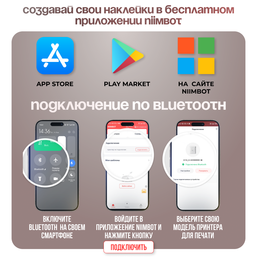 Мини принтер NIIMBOT D110M, беспроводной, Bluetooth, для этикеток, штрих-кодов интересное: