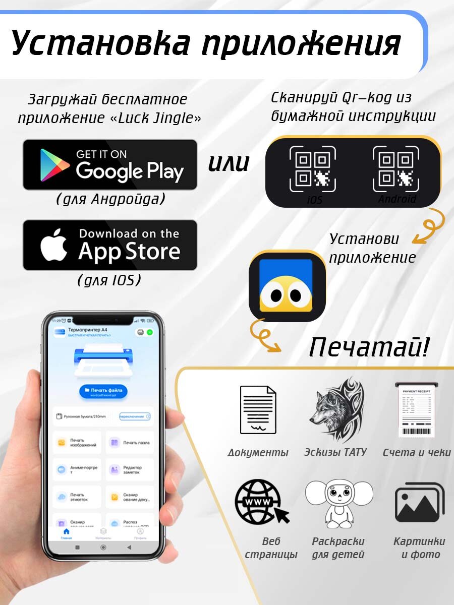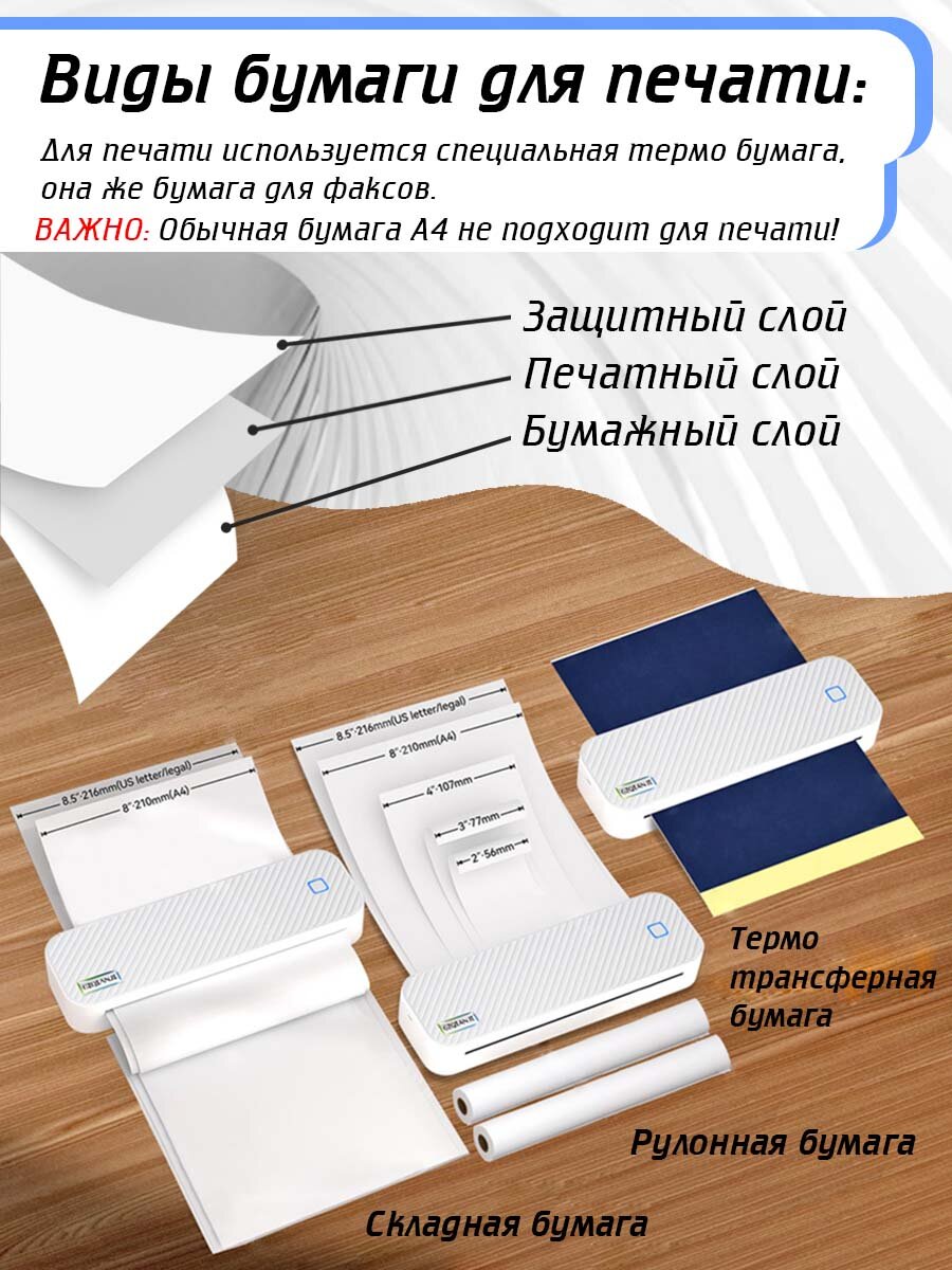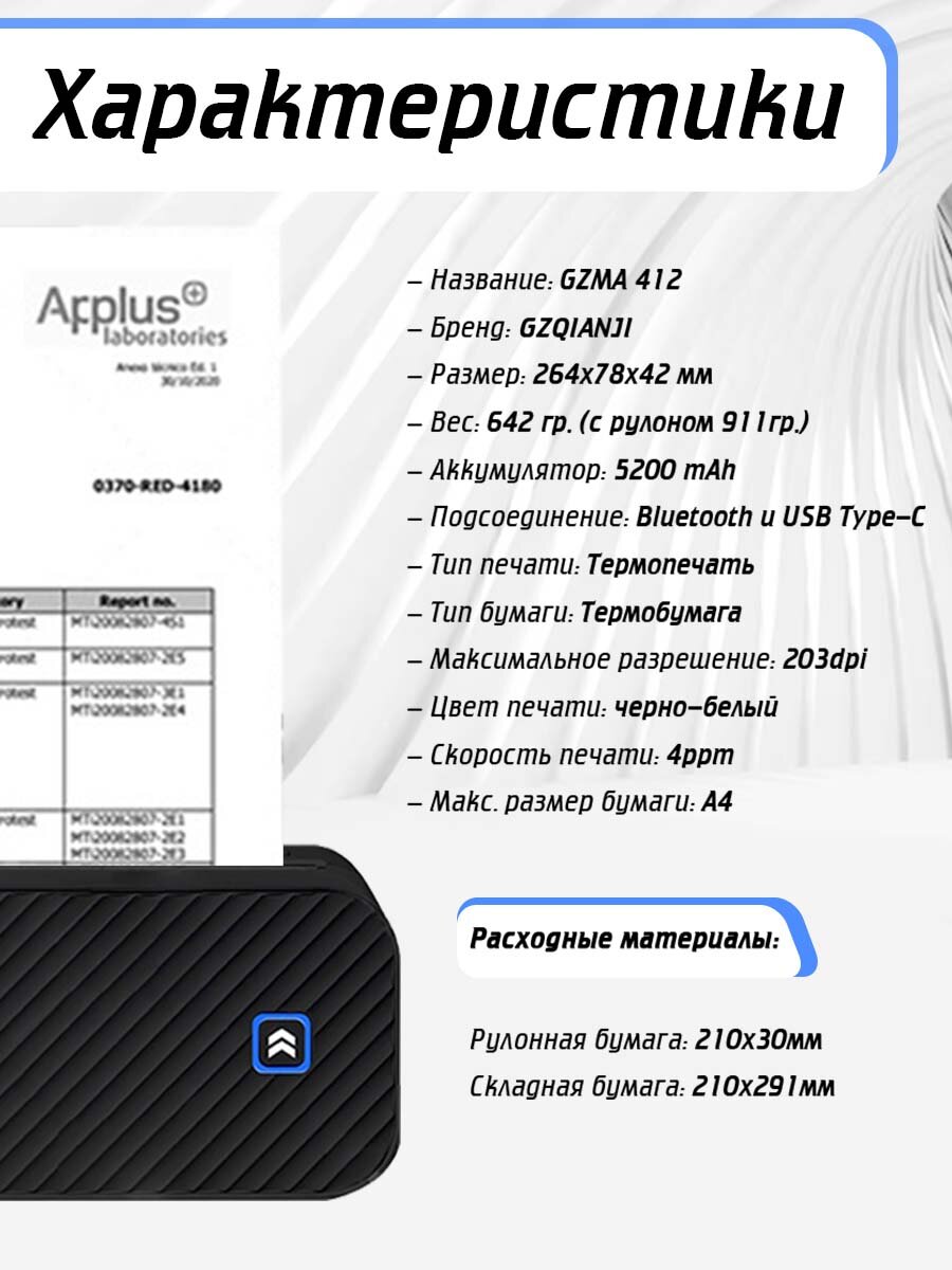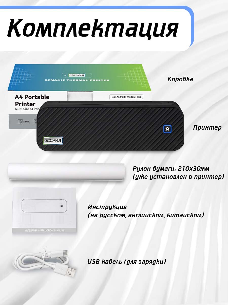 Термопринтер А4 для телефона, портативный мини принтер для тату GZMA412 интересное: