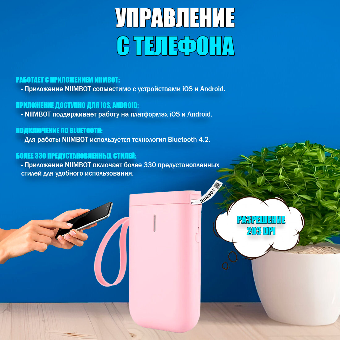 Термопринтер Niimbot D11 H (розовый), Bluetooth 4.2, термопечать интересное: