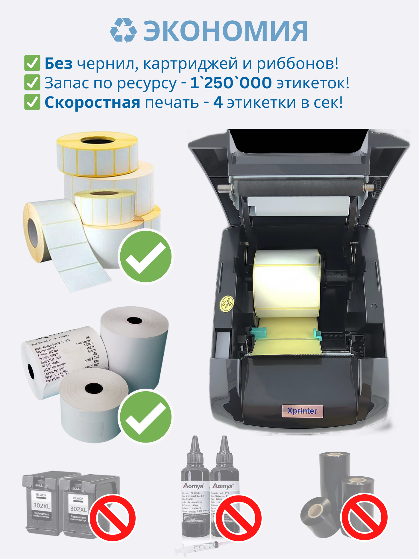 Купить Термопринтер этикеток для маркетплейсов Xprinter XP-365B Bluetooth + Этикетки и Поддержка