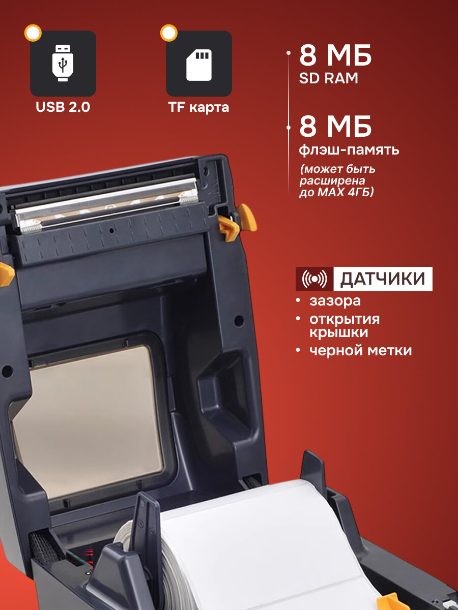 Термопринтер для печати этикеток Xprinter DT-426B (USB), цвет черный интересное: