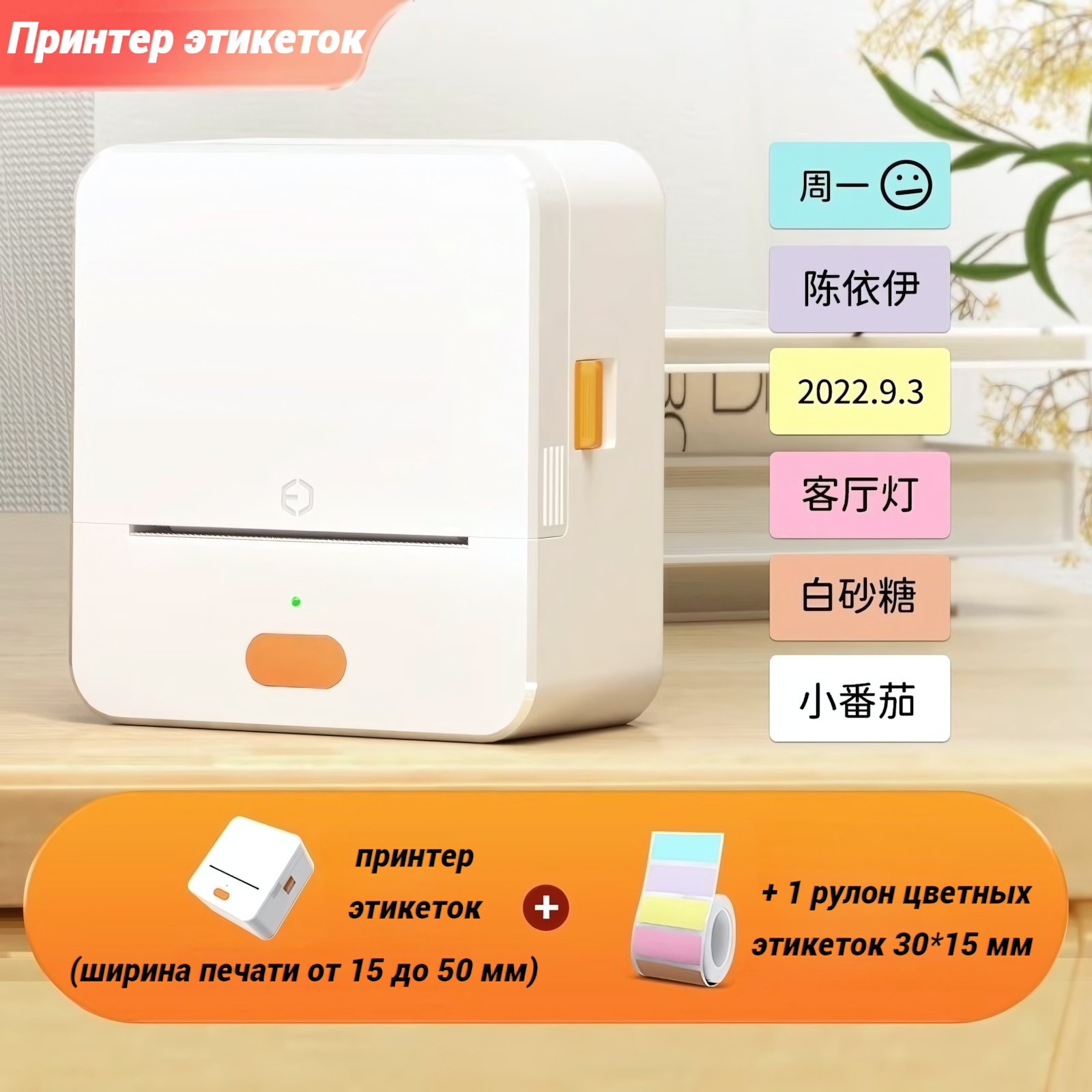 Портативный принтер для этикеток P1 с 1 рулоном цветных самоклеящихся этикеток размером 30 х 15 мм в комплекте интересное:
