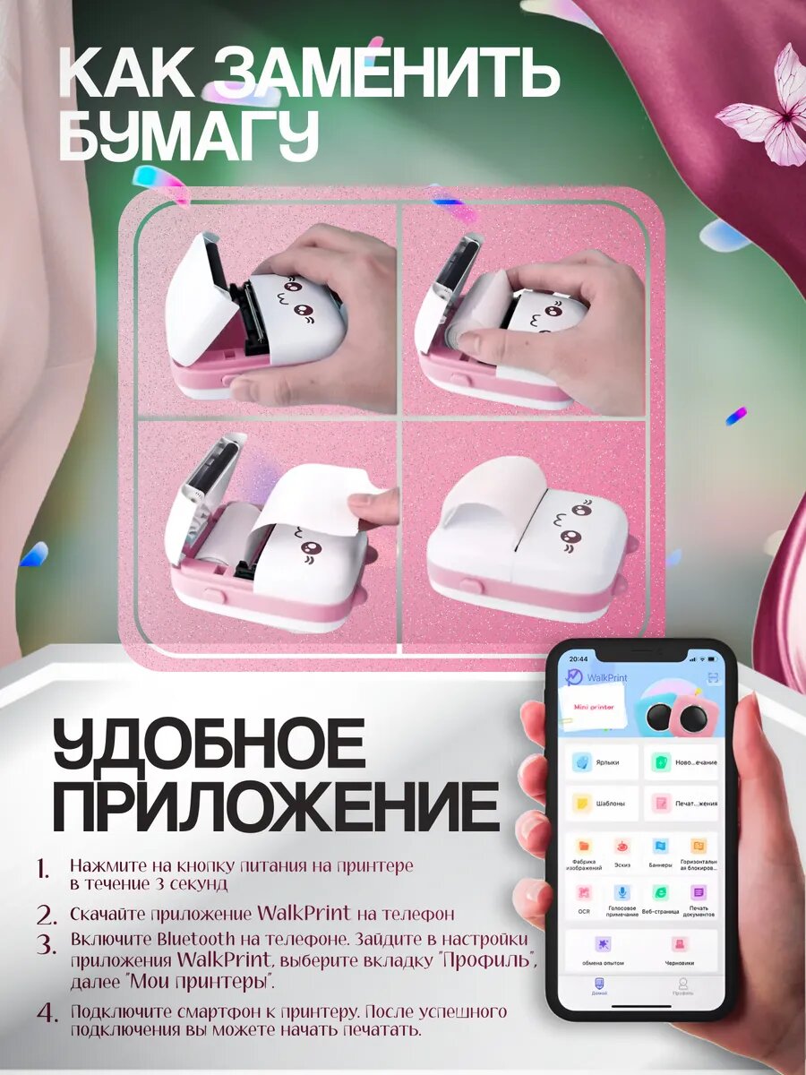 Мини термо принтер детский портативный интересное: