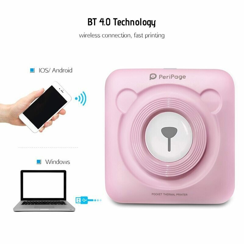 Портативный термопринтер для чеков/наклеек розовый интересное: