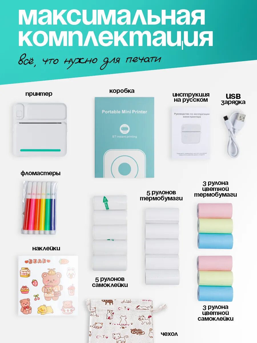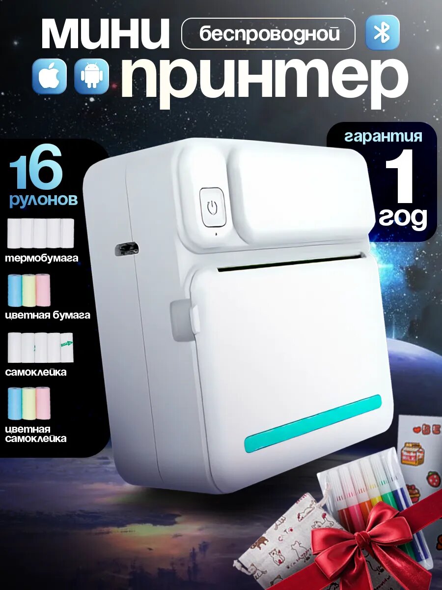Купить Мини принтер для телефона и наклеек портативный без чернил