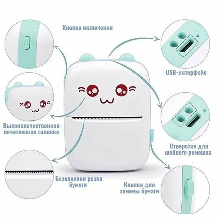 Портативный мини термопринтер для быстрой термопечати, карманный, мобильный, Мяу-принтер интересное: