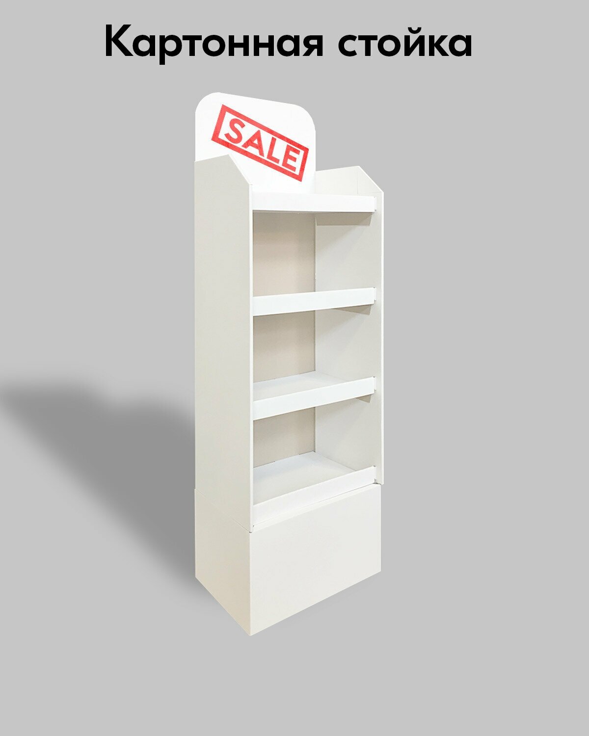 Картонная стойка для размещения товаров с надписью "Sale" интересное: