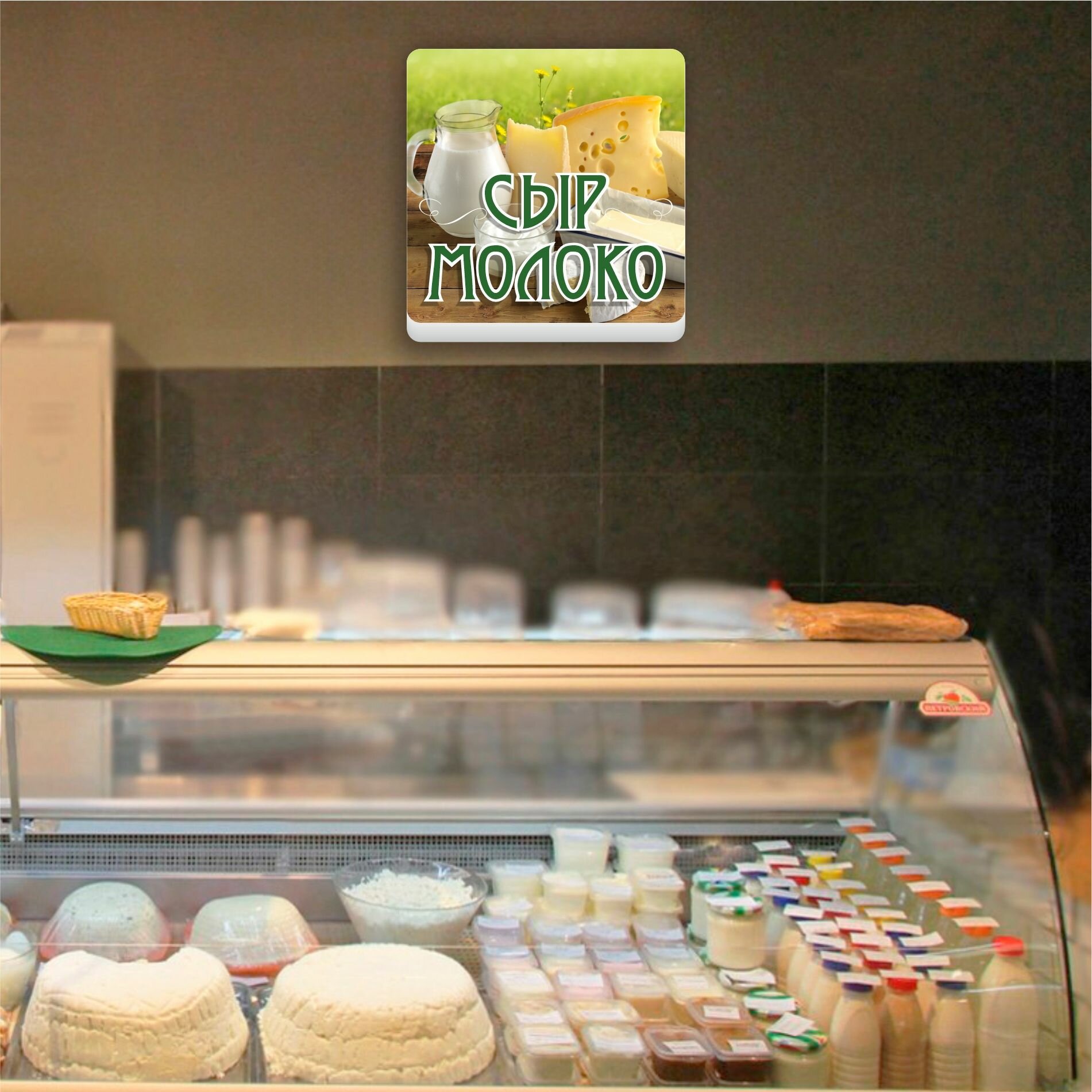 Световая вывеска "Сыр Молоко" Объемный короб с подсветкой Лайтбокс квадратный интересное: