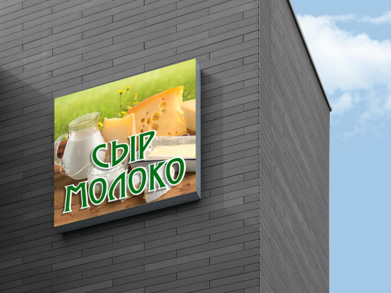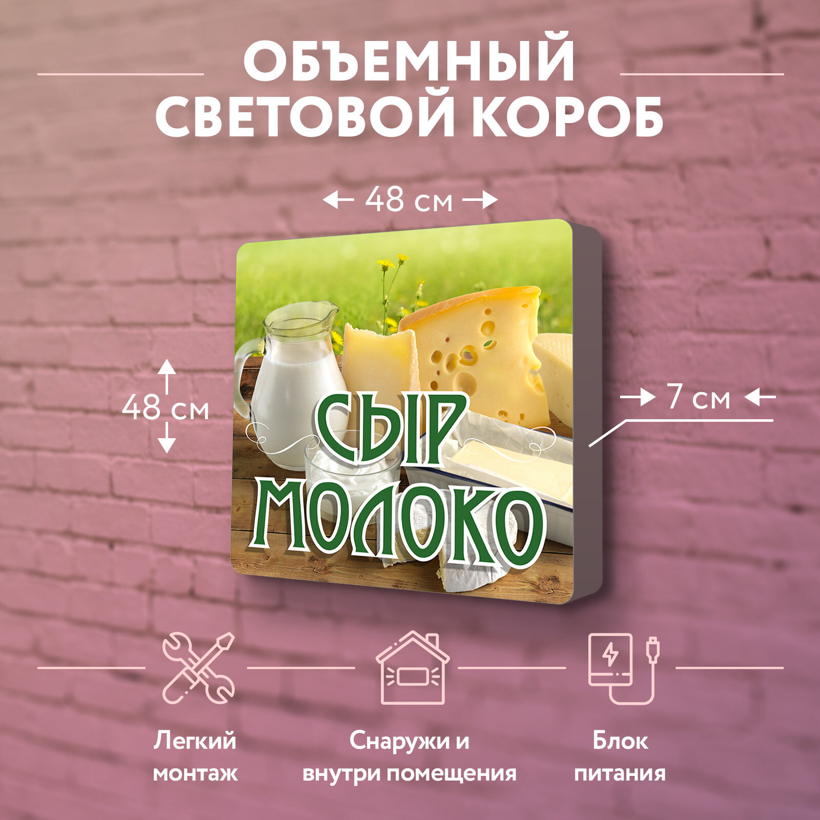Купить Световая вывеска "Сыр Молоко" Объемный короб с подсветкой Лайтбокс квадратный