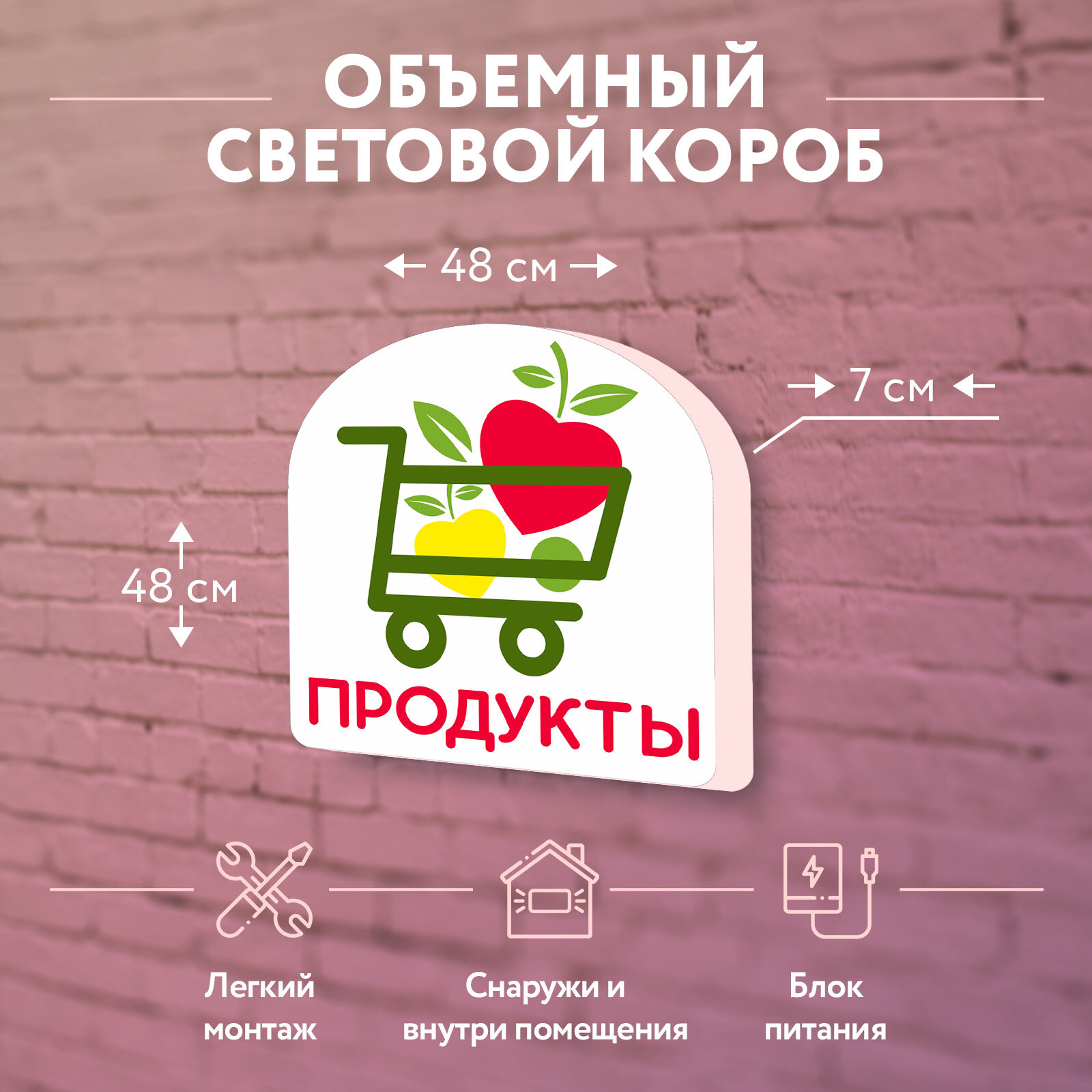 Купить Световая вывеска "Продукты" Объемный короб с подсветкой Лайтбокс фигурный