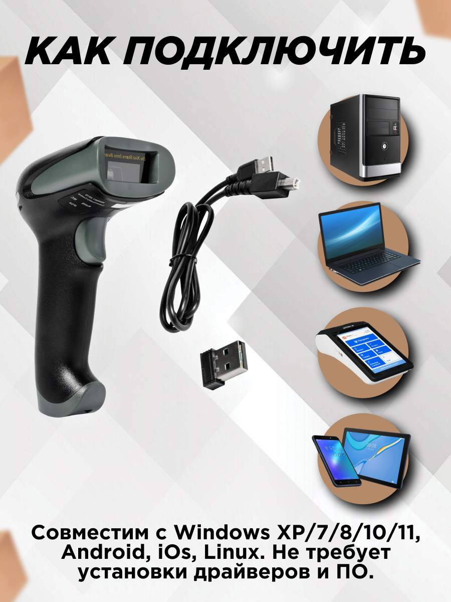 Проводной сканер штрих-кодов 1D/2D USB для пвз, ЕГАИС, Честный знак, QR, 1C, Frontol, Атол, Меркурий, Эвотор и др