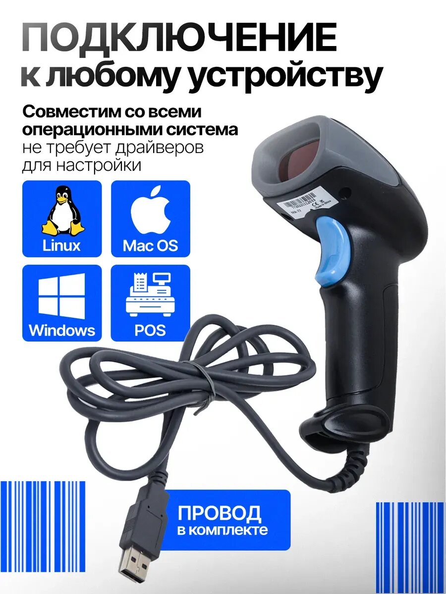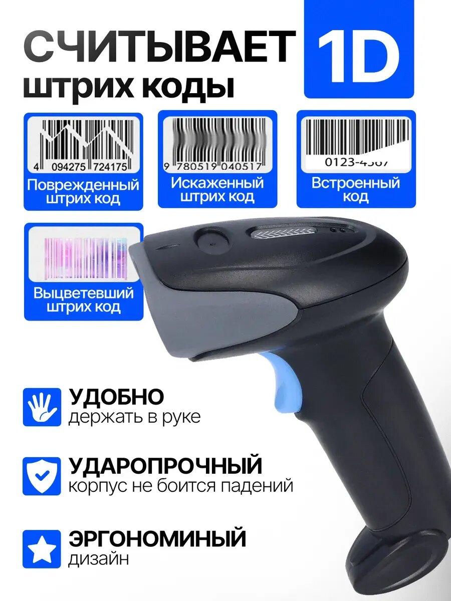 Сканер штрих-кодов 1D, проводной, для линейных кодов и маркировки честный знак, магазина, маркетплейсов, Атол, Меркурий интересное: