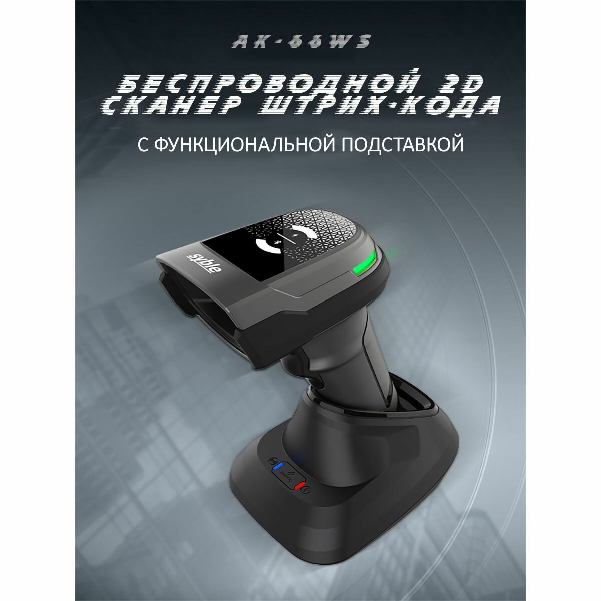 Беспроводной Bluetooth сканер штрихкодов 2D Kiant AK-66WS на подставке интересное: