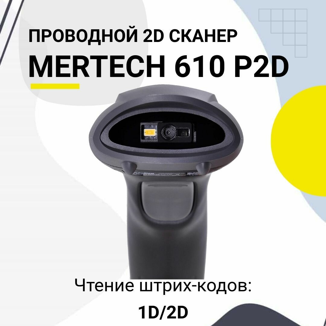 Проводной сканер штрих-кода Mertech 610 P2D SUPERLEAD (2D, черный, USB, без подставки) интересное: