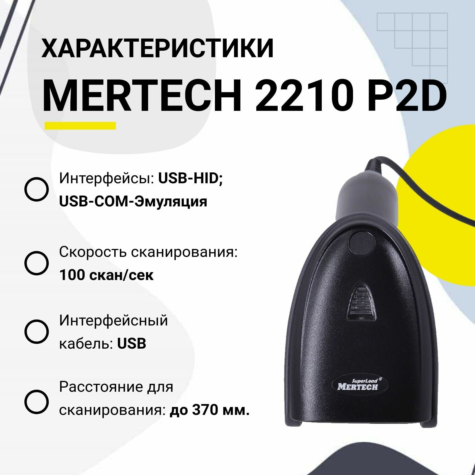 Купить Проводной сканер штрих-кода Mertech 2210 P2D SUPERLEAD (2D, черный, USB, без подставки, кабель 3м)