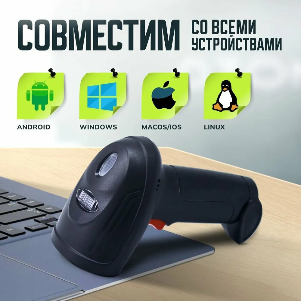 Беспроводной сканер штрих-кода МойPOS MSC-9516W2D, арт. 4534, 2D, черный, без подставки Cradle