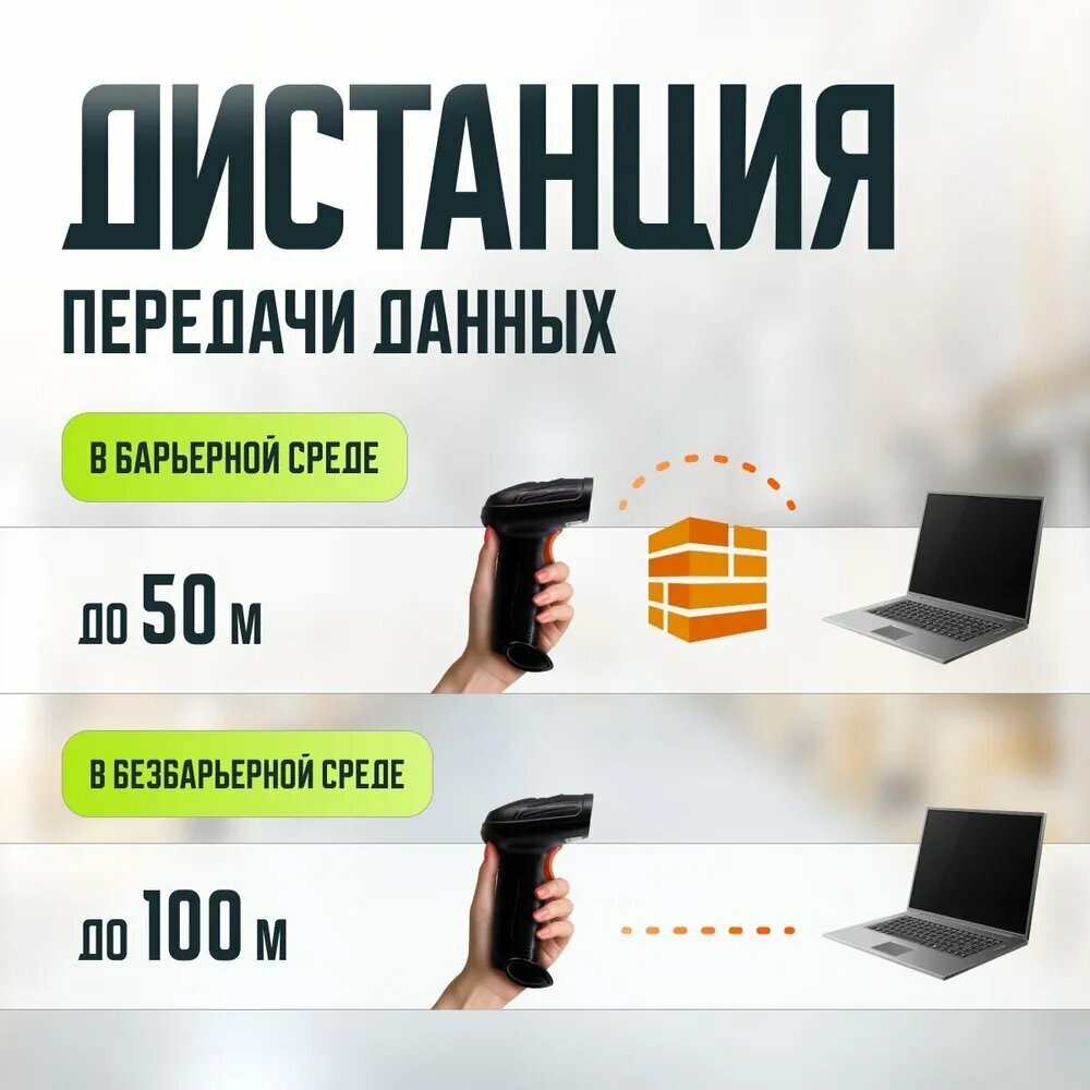 Беспроводной сканер штрихкода 2D оранжевый, для ПВЗ для маркировки, ЕГАИС, Честный знак, Атол, Меркурий. Модель 33M интересное: