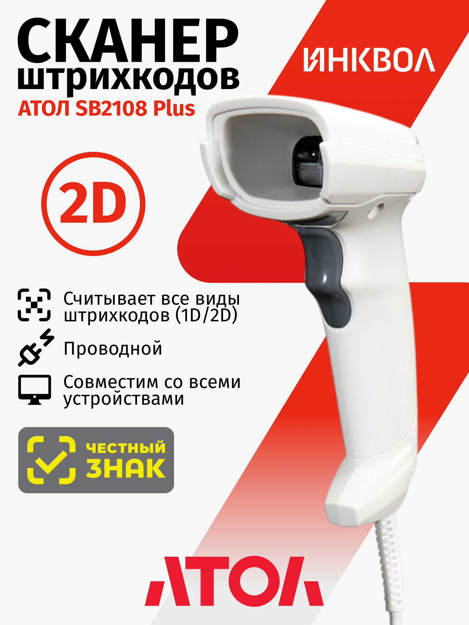 Сканер штрихкода АТОЛ SB2108 Plus (rev.2) (2D, белый, USB, без подставки, упаковка 1 шт.) интересное: