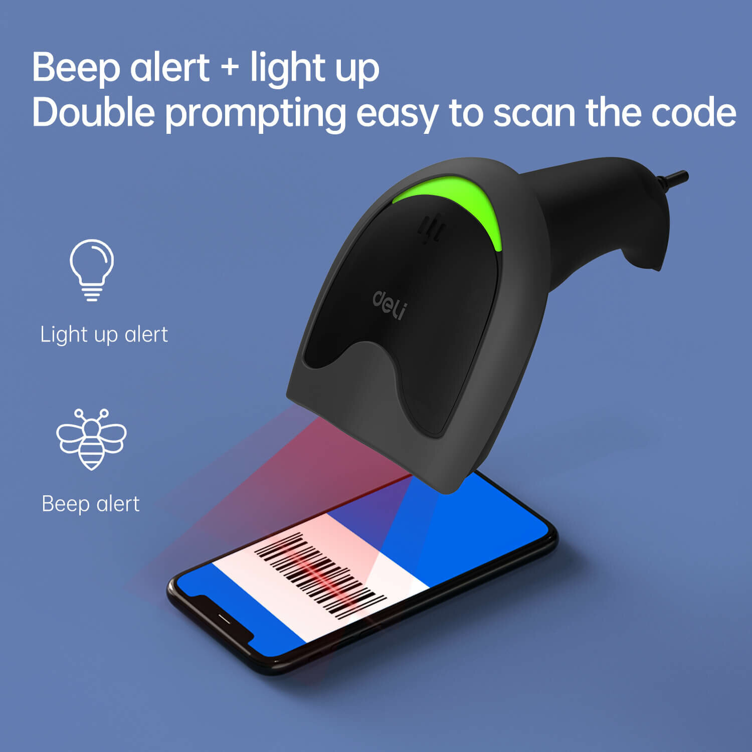 Купить Сканер штрих-кодов Deli ES211, проводное подключение, 1D, черный