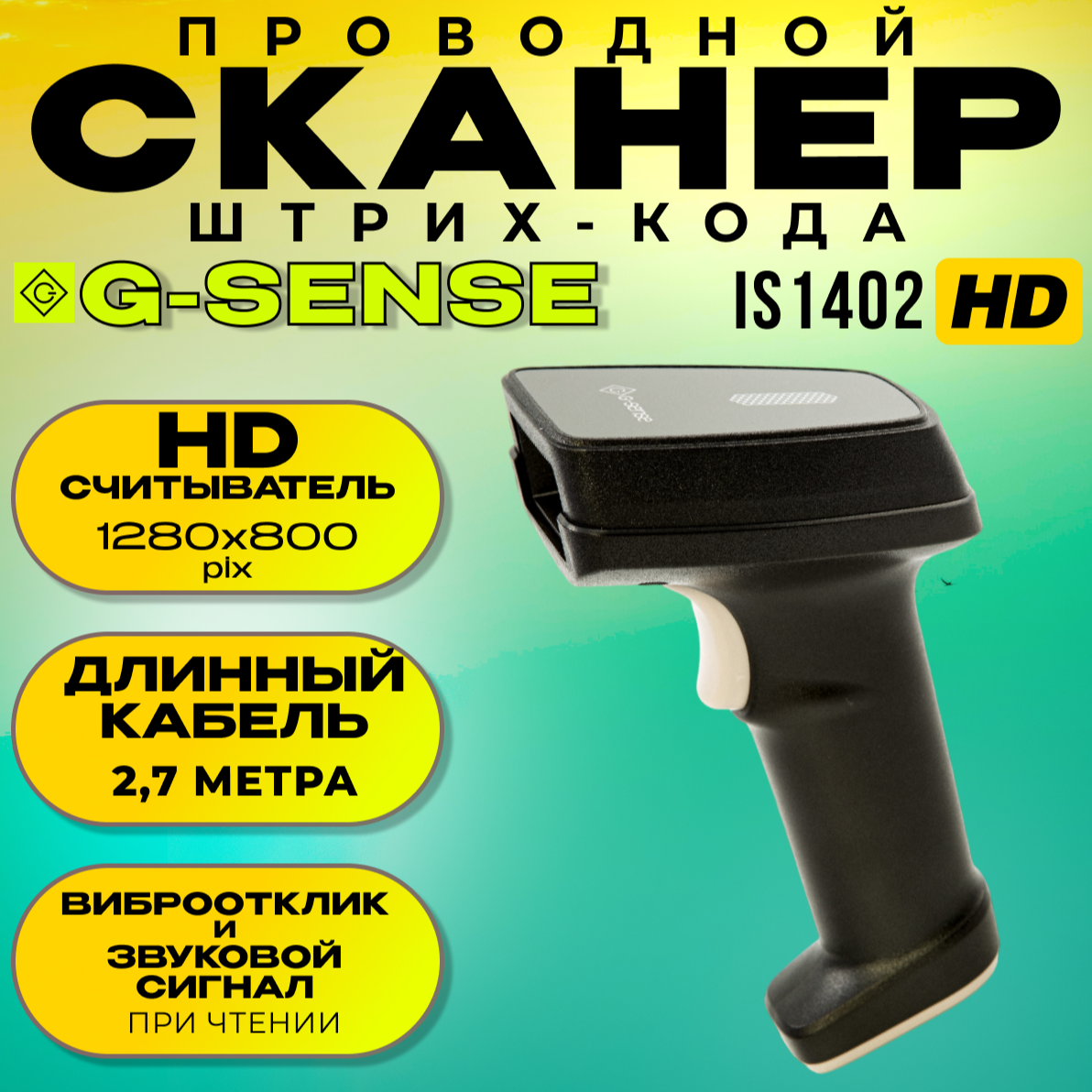 Купить Сканер штрих-кода G-SENSE IS1402 HD (1D/2D, USB, ручной, разрешение: 1280*800 pix)