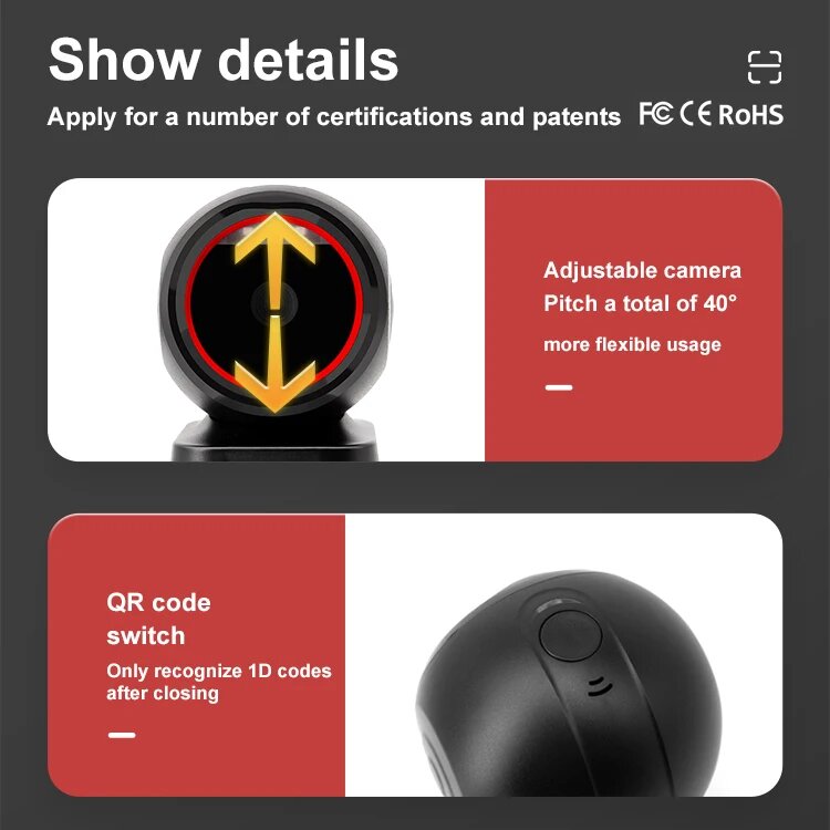 Настольный сканер штрих-кодов 1D 2D USB, X6-600 интересное: