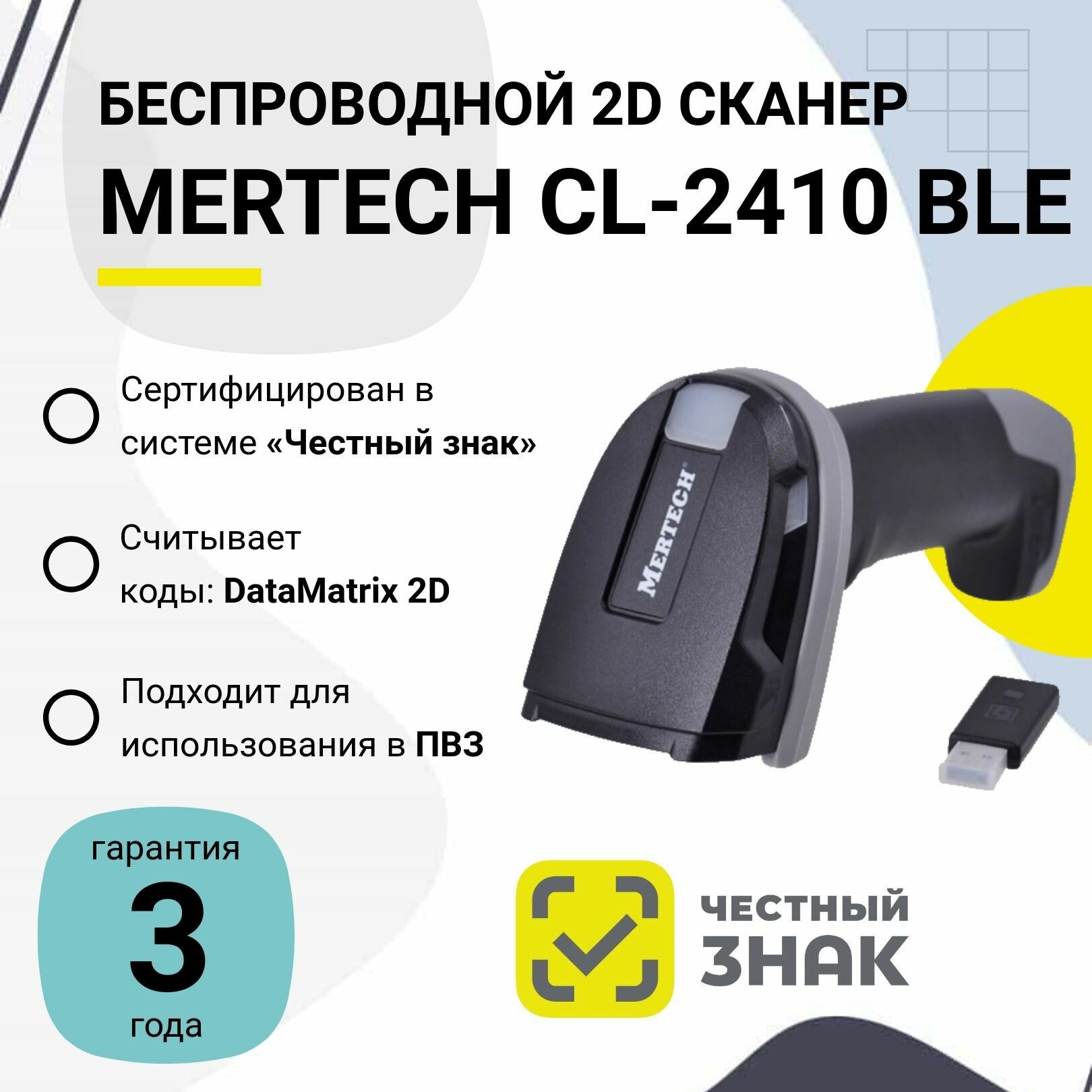 Беспроводной сканер штрих-кода Mertech CL-2410 BLE Dongle P2D (2D, черный, USB, без подставки Cradle) интересное: