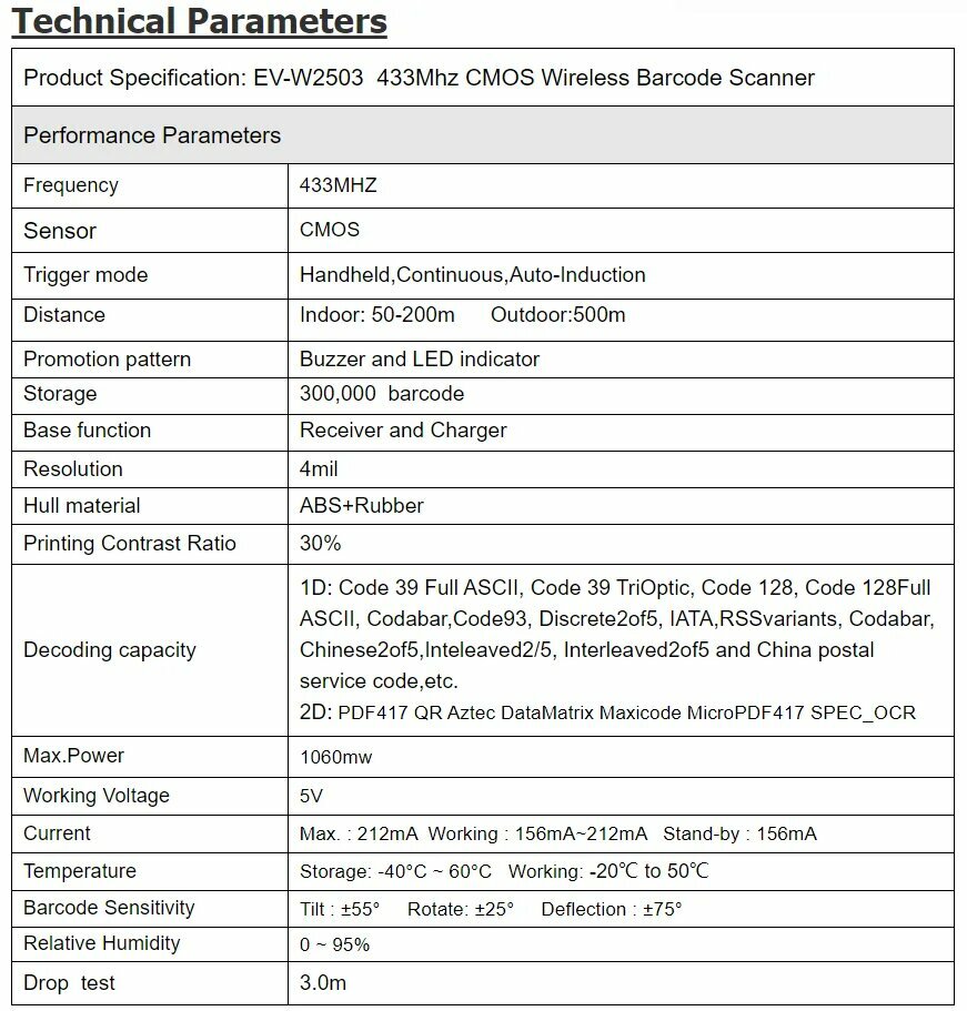 Беспроводной сканер штрих-кода EVAWGIB 3-в-1, 1D-Laser(Black) интересное: