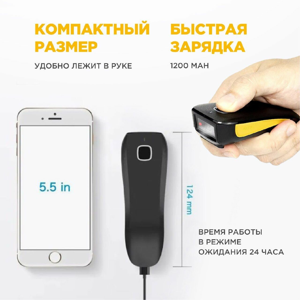 Беспроводной 2D сканер штрихкодов и QR кодов Escanear Pro