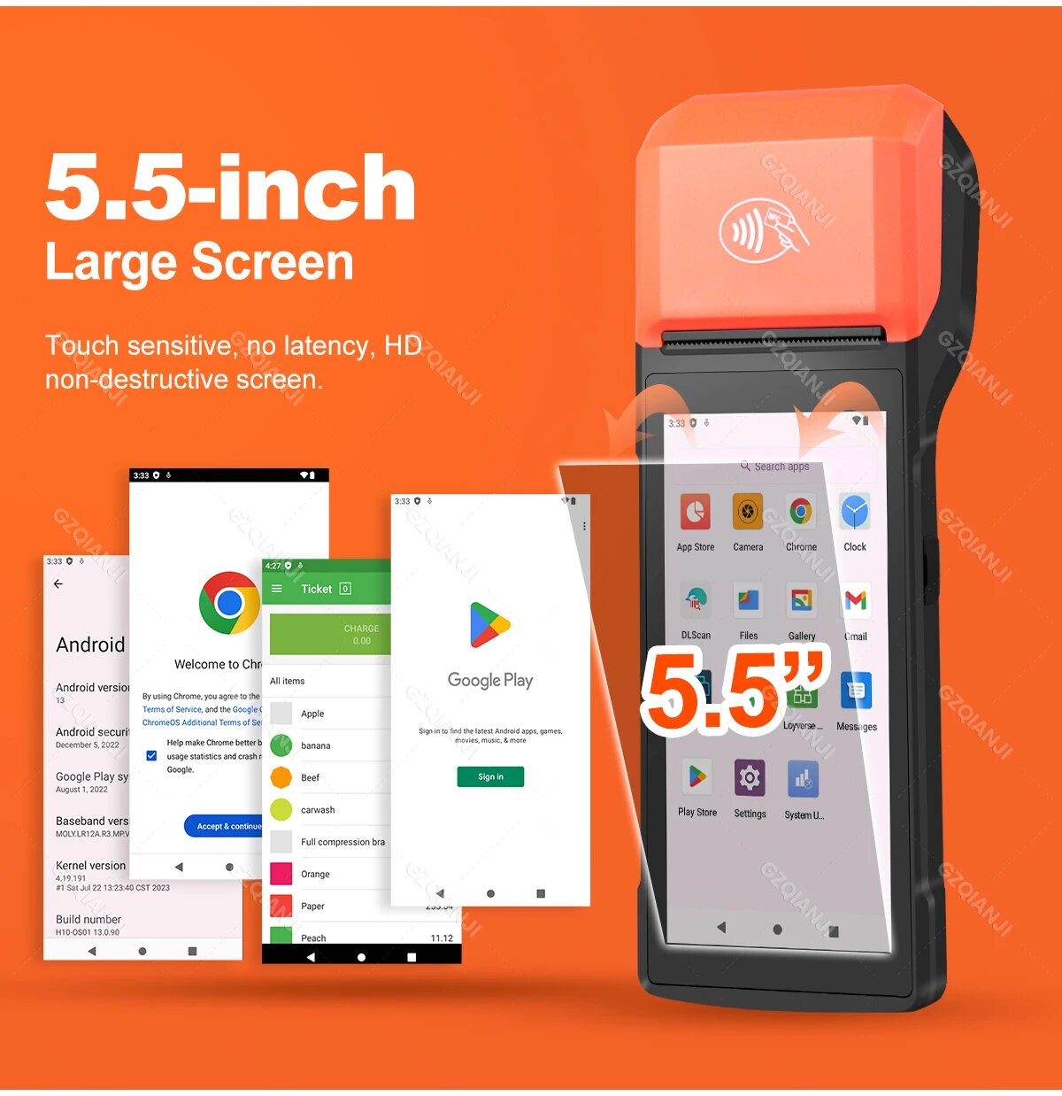 Портативный POS-терминал Android 13/8.1 с NFC, сканером 1D/2D, термопринтером 58мм, 3G Android 8.1, EU интересное: