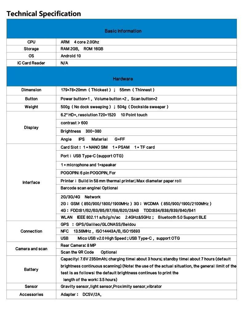 YK&SCAN Портативный POS-терминал 6,2 дюйма Android10 2+16 ГБ, No scanner POS, США интересное: