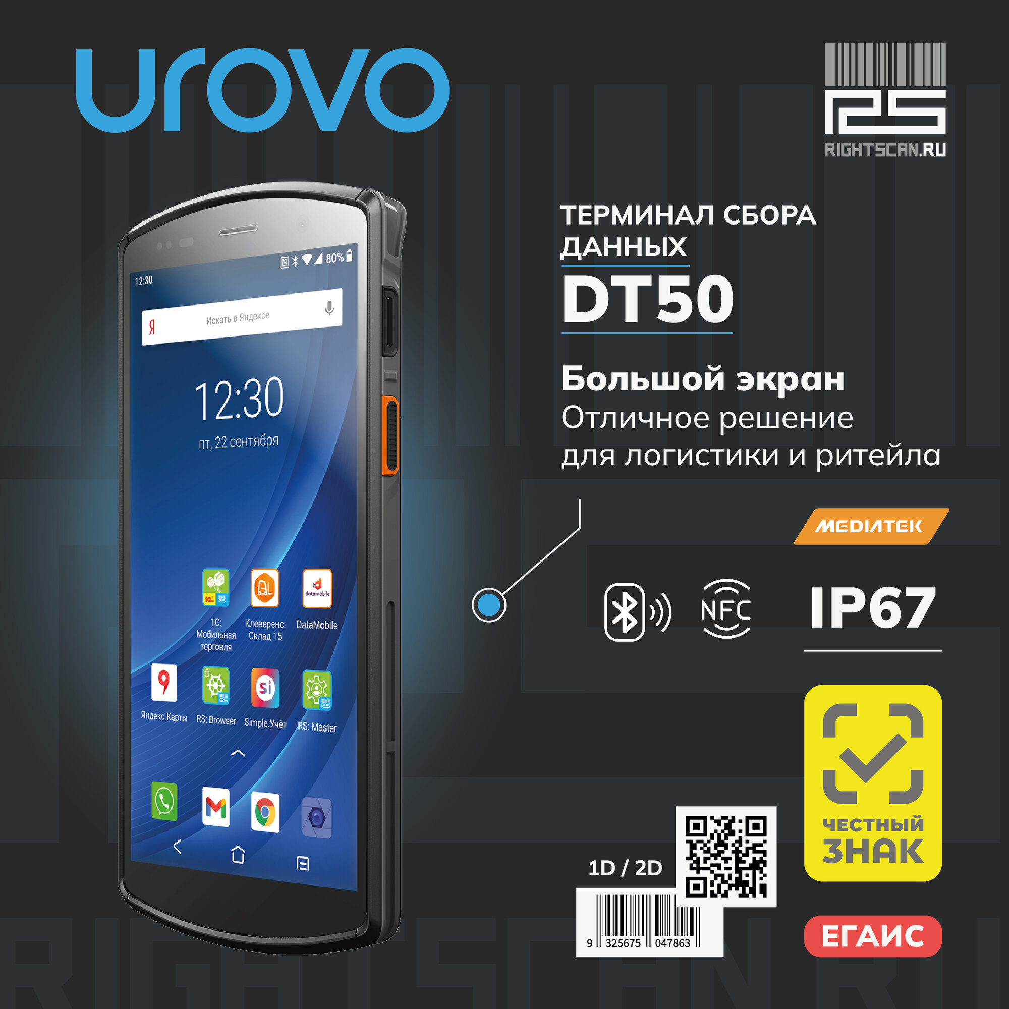 Терминал сбора данных UROVO DT50 4/64 ГБ, Android 11, сканер 2D, IP67, 4G, Wi-Fi, NFC интересное: