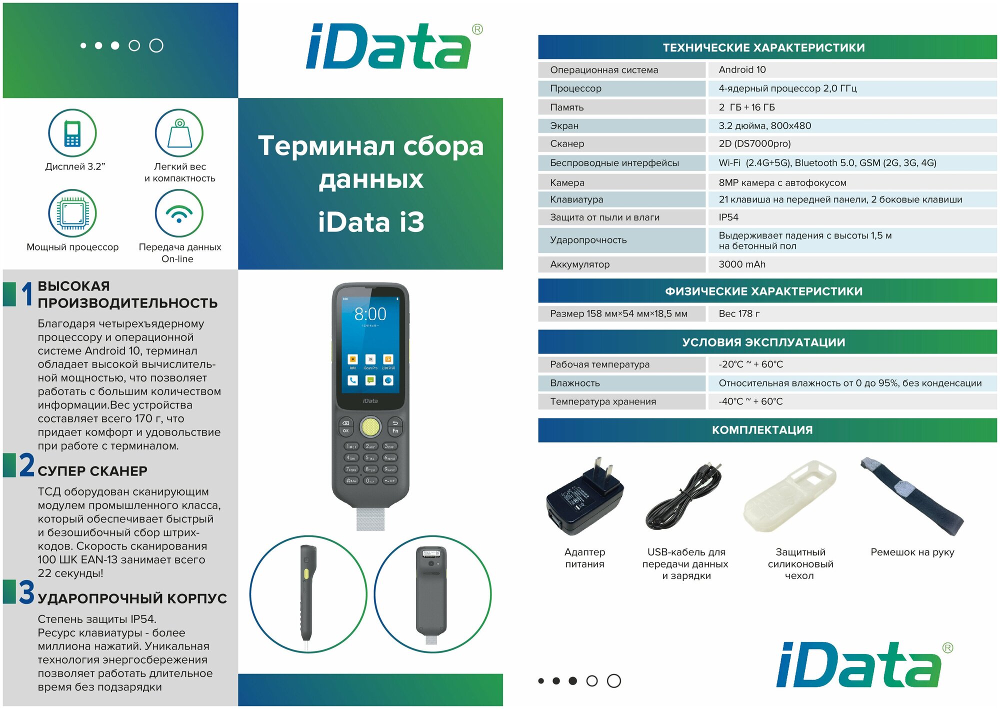 Терминал сбора данных iData i3 (экран 3.2" разрешение 800 х 480; 23 клавиши; АКБ 3000 mAh; камера 8MP) интересное: