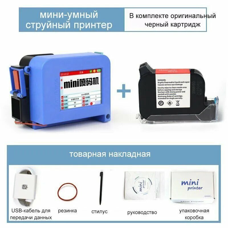 Маркиратор каплеструйный ручной принтер /каплеструйный датер многострочный сенсорный 12.7мм С 1 чернилами черного цвета интересное: