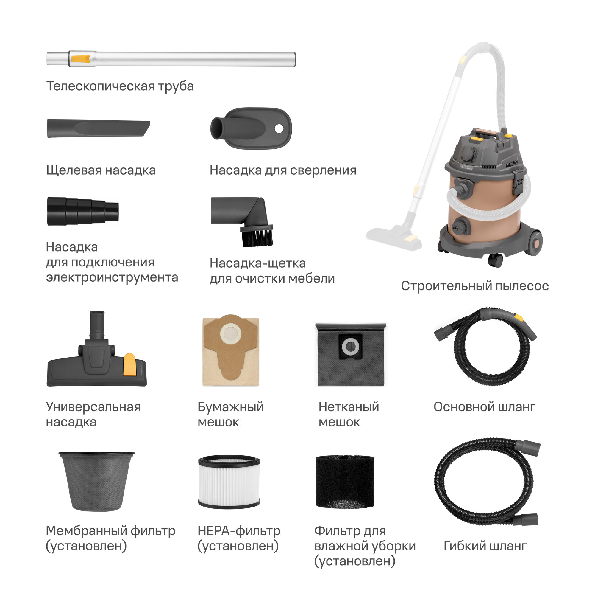 Пылесос строительный Nocord NVE-1600.20. S, 1600 Вт, 20 л, шланг 2+2 м, автоматическая розетка интересное: