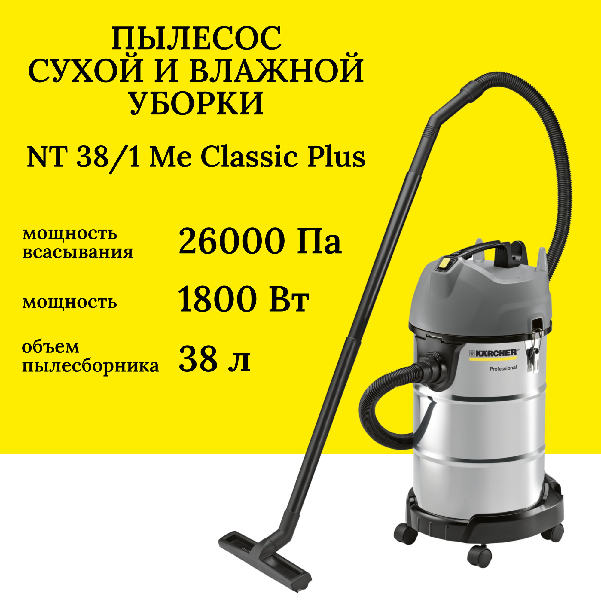 Пылесос для влажной и сухой уборки Karcher NT 38/1 Me Classic Plus, серый интересное: