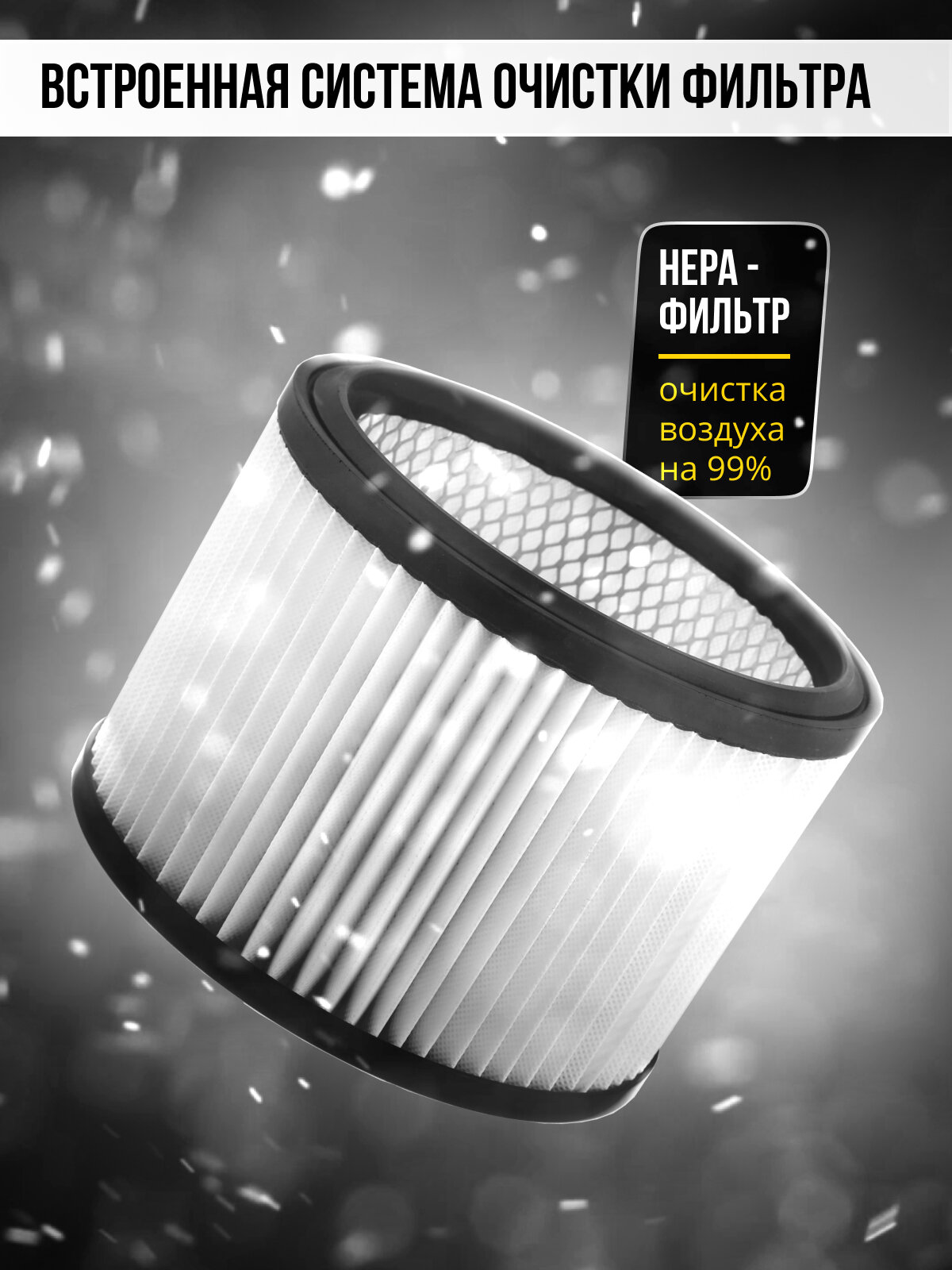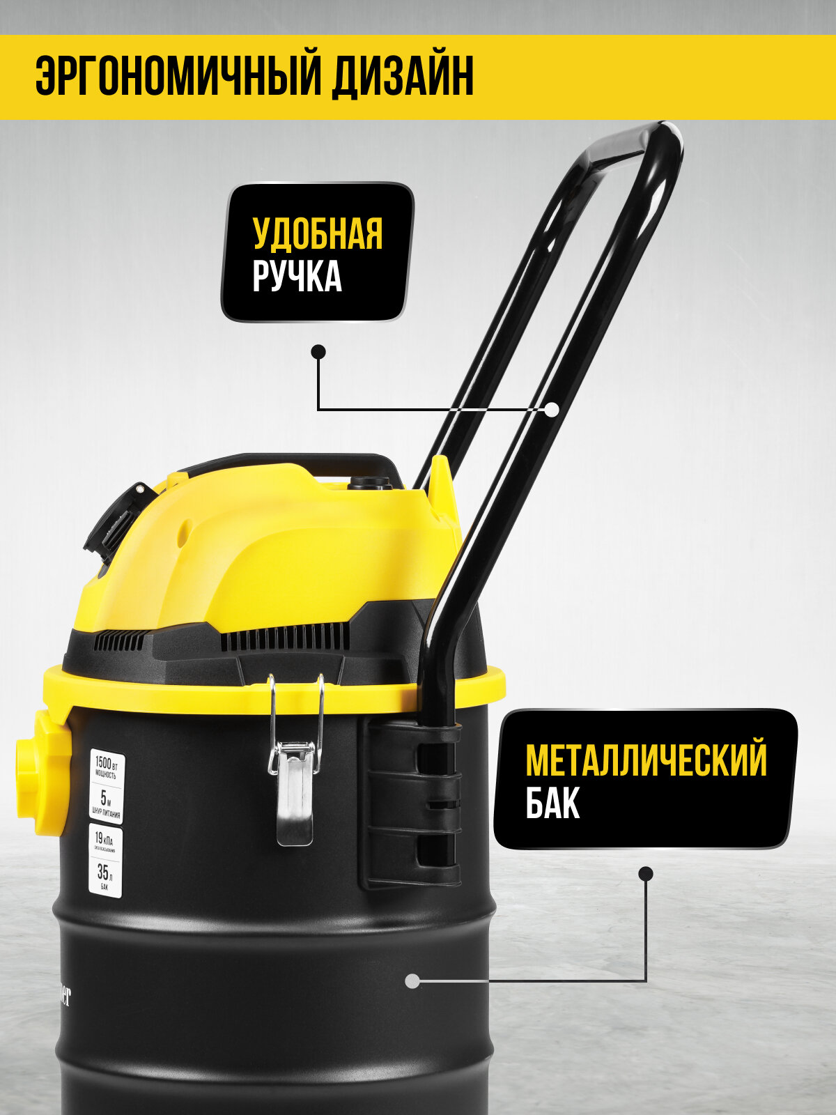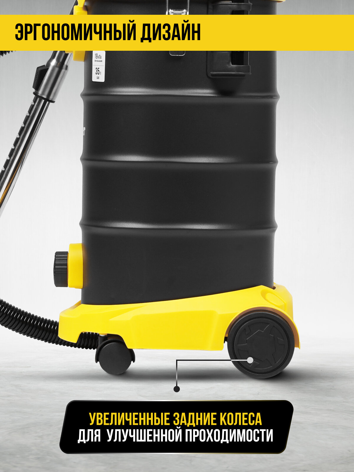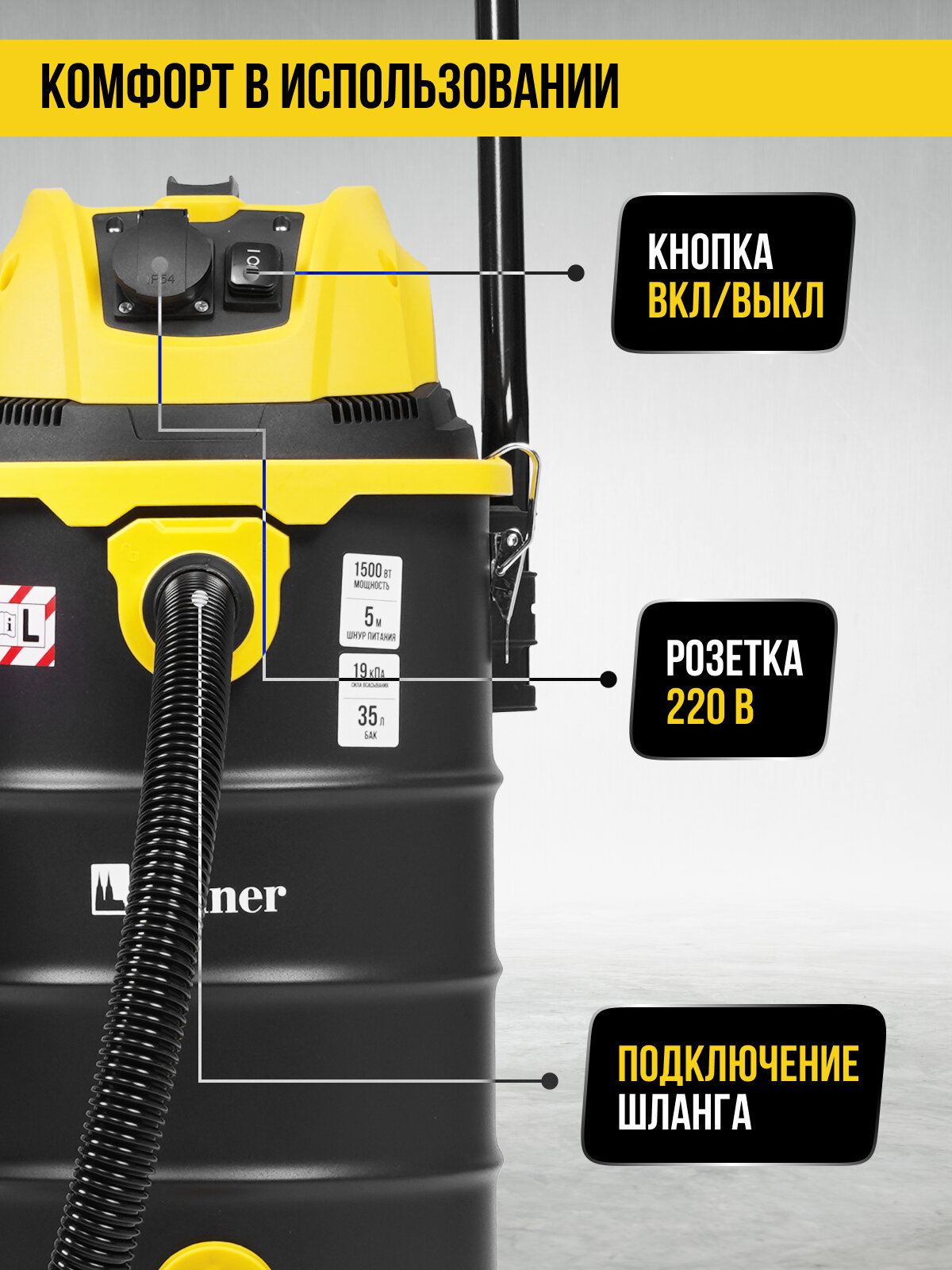 Пылесос строительный Kolner "KVC 35L-FS", мощность всасывания 1500Вт, расход воздуха 33 л/с, чёрный интересное: