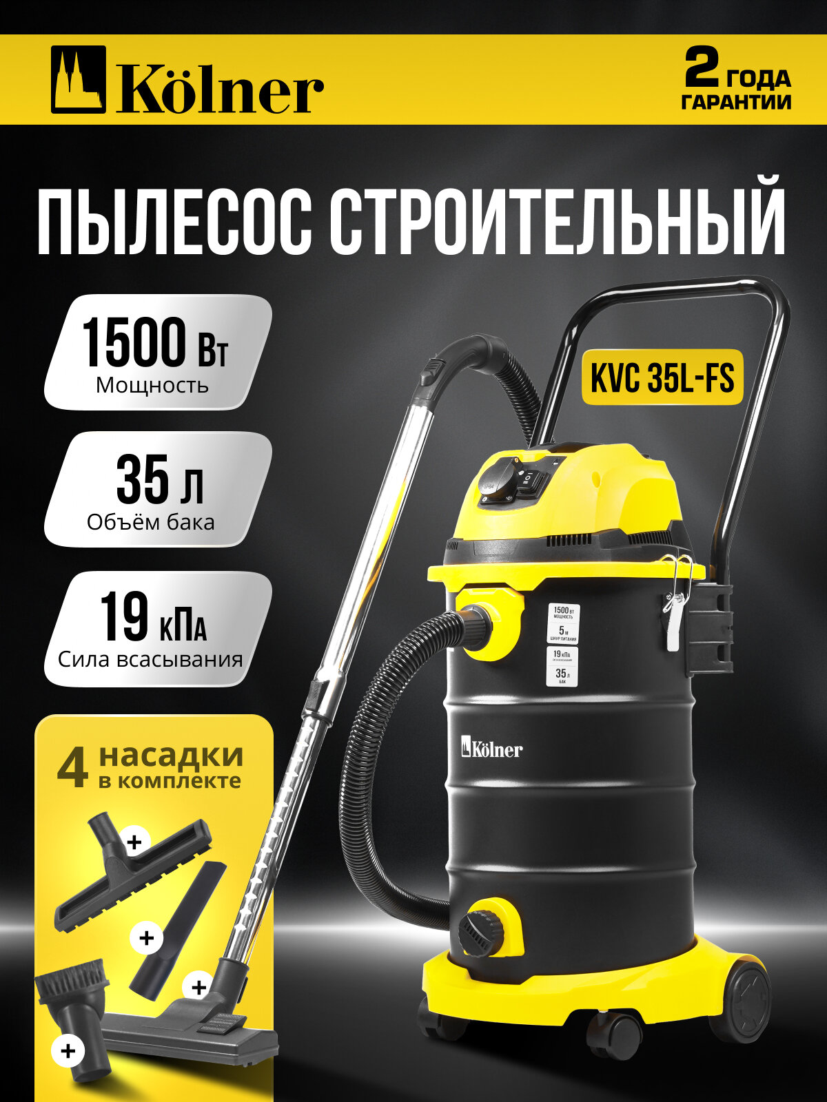 Ниже Вы можете прочитать отзывы на Пылесос строительный Kolner "KVC 35L-FS", мощность всасывания 1500Вт, расход воздуха 33 л/с, чёрный, ознакомится с подробными характеристиками, посмотреть интересные обзоры и фотографии на Пылесос строительный Kolner "KVC 35L-FS", мощность всасывания 1500Вт, расход воздуха 33 л/с, чёрный.